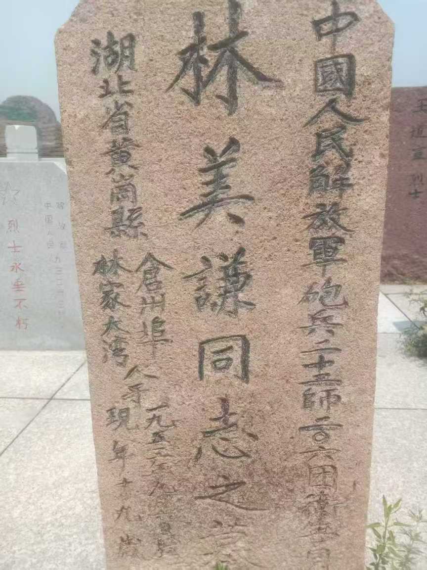 林美谦烈士墓碑。志愿者“寒号鸟”供图