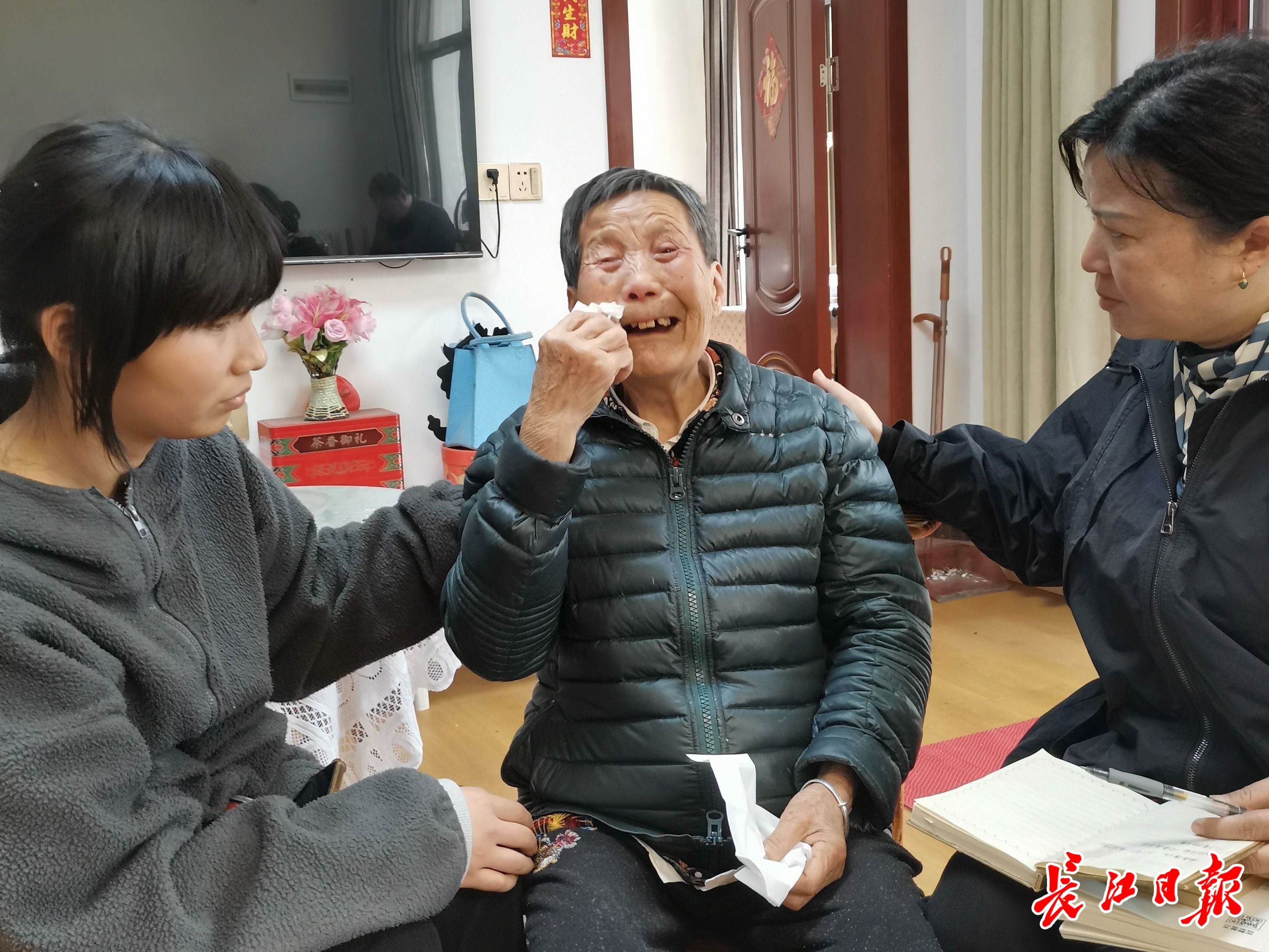 得知哥哥下落,林美清(中)泣不成声。长江日报记者史强 摄
