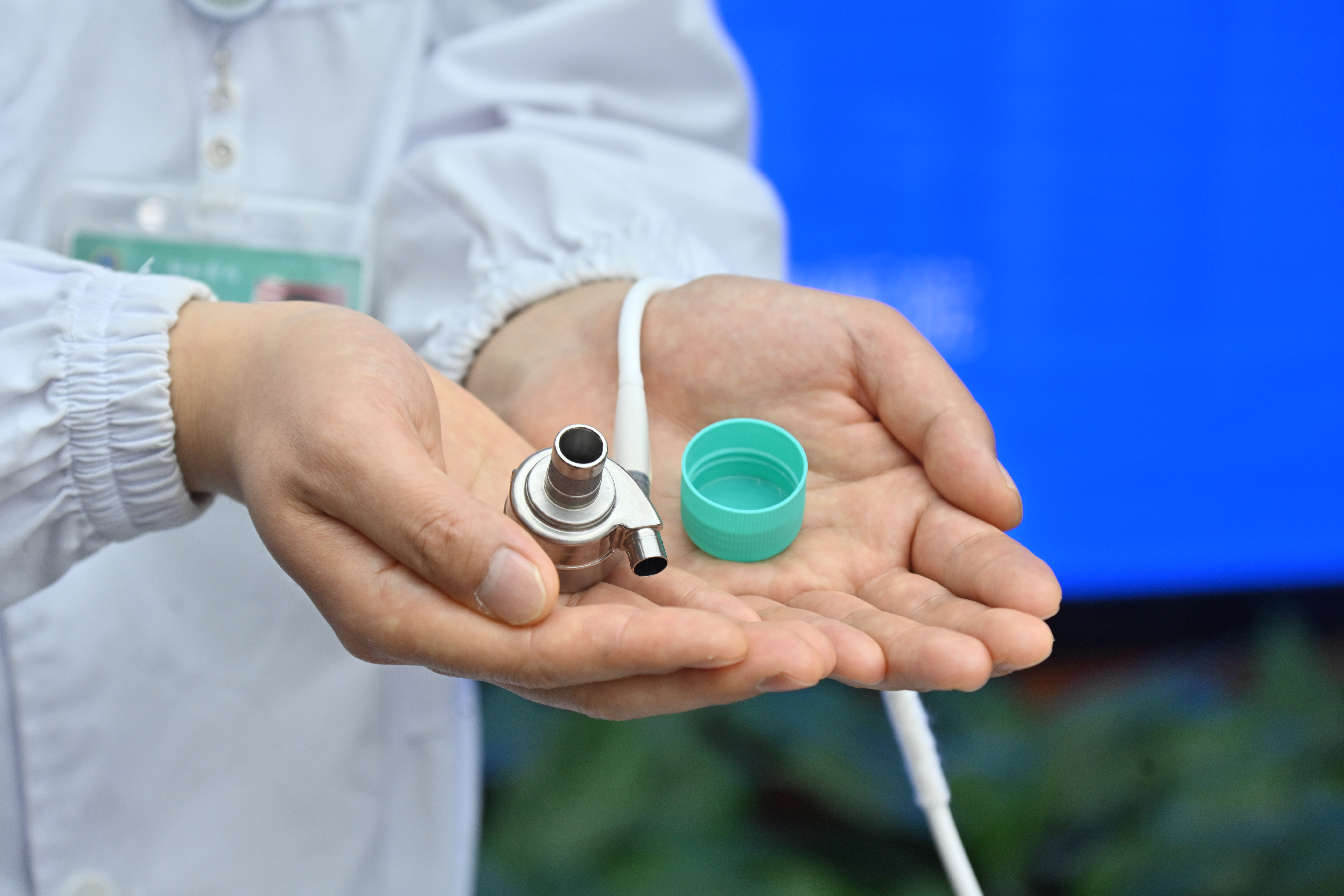 新研发的全球最轻、最小磁悬浮“中国心”,外形仅矿泉水瓶盖大小,重量仅45克。通讯员赵炯 刘坤维 供图