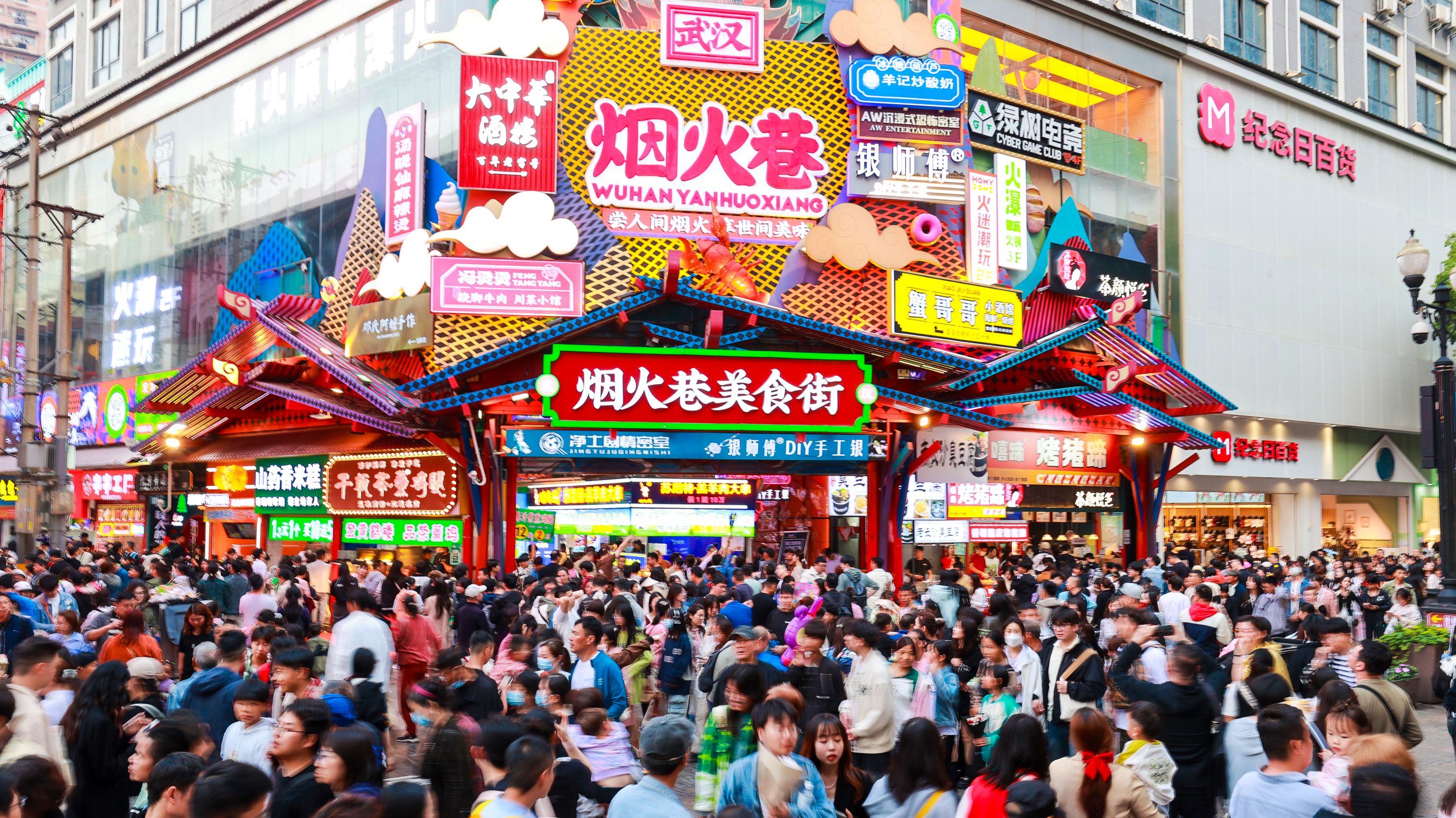江汉路步行街全长1600米,是武汉著名的百年商业老街。街道两侧的中西建筑林立,展现了欧陆风格、罗马风格、拜占庭风格等多种艺术风格,形成了独特的“万国建筑博览”景观。如今,这里汇集了众多国际品牌和本土商家,日均客流量超过30万人次,是武汉最繁华的商业中心之一。(陈亮 摄)