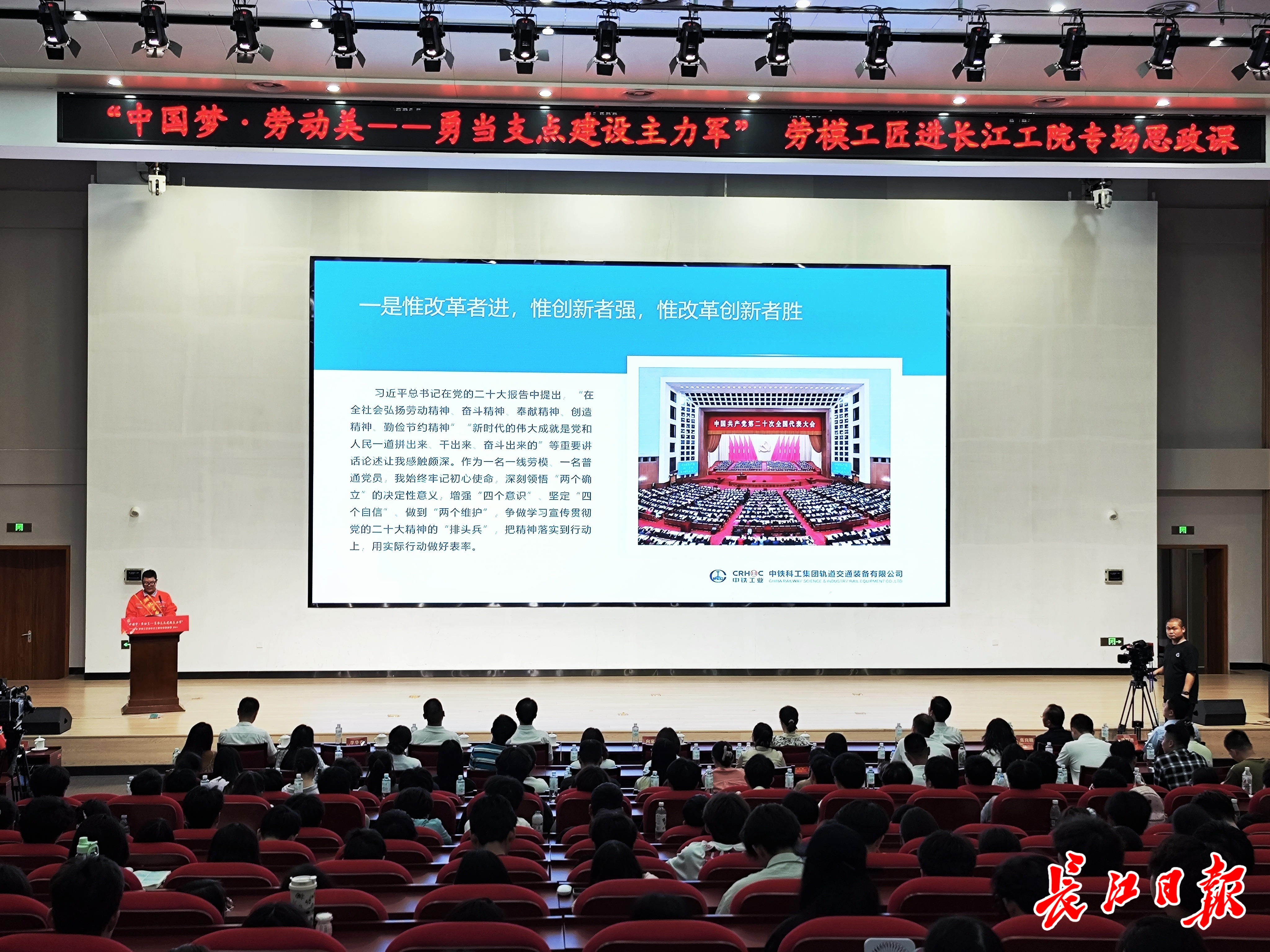 “中国梦·劳动美——勇当支点建设主力军”主题思政课走进长江工程职业技术学院。长江日报记者 刘克取 摄