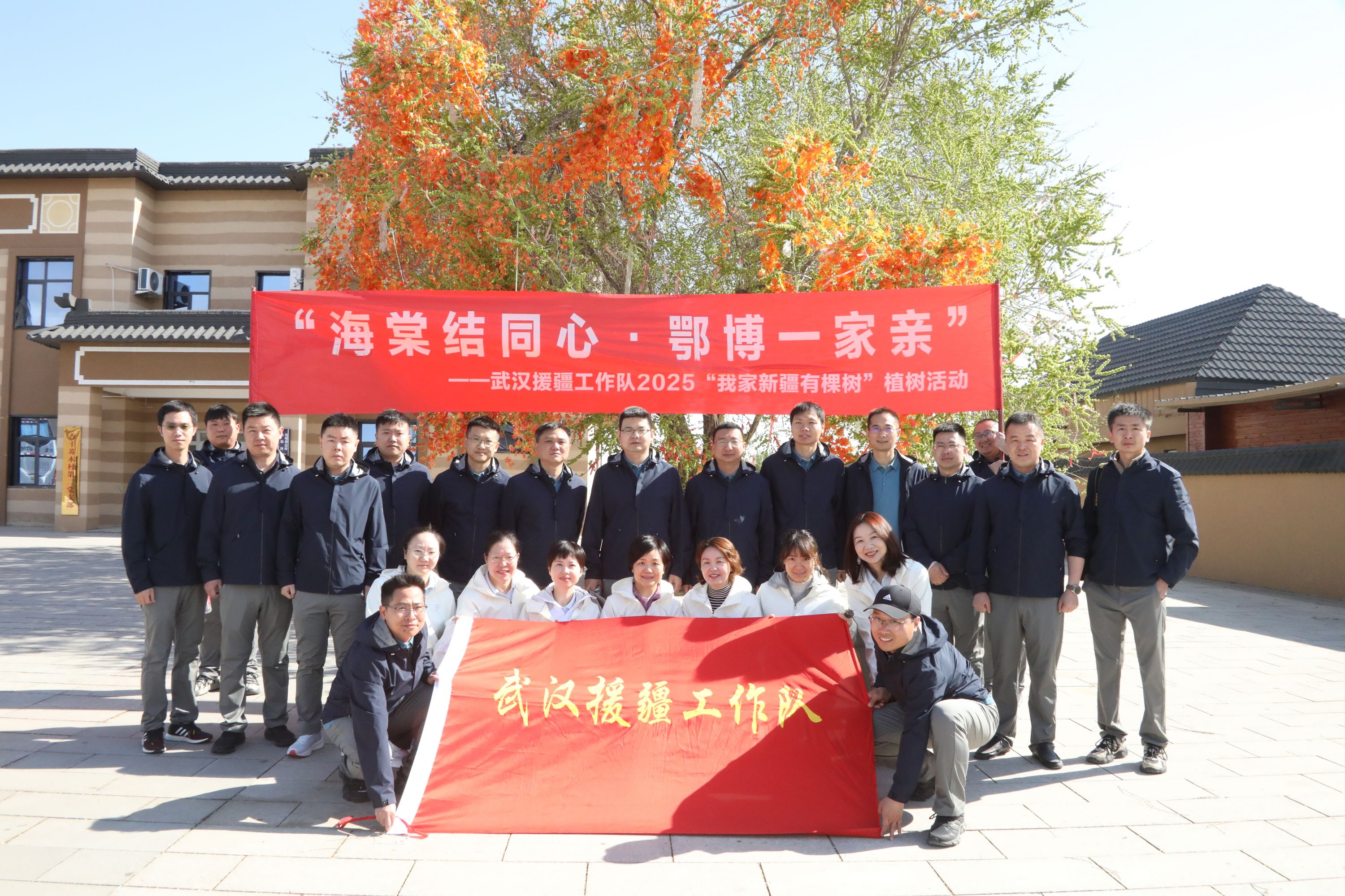 武汉援疆工作队员参加完2025年植树活动后合影。