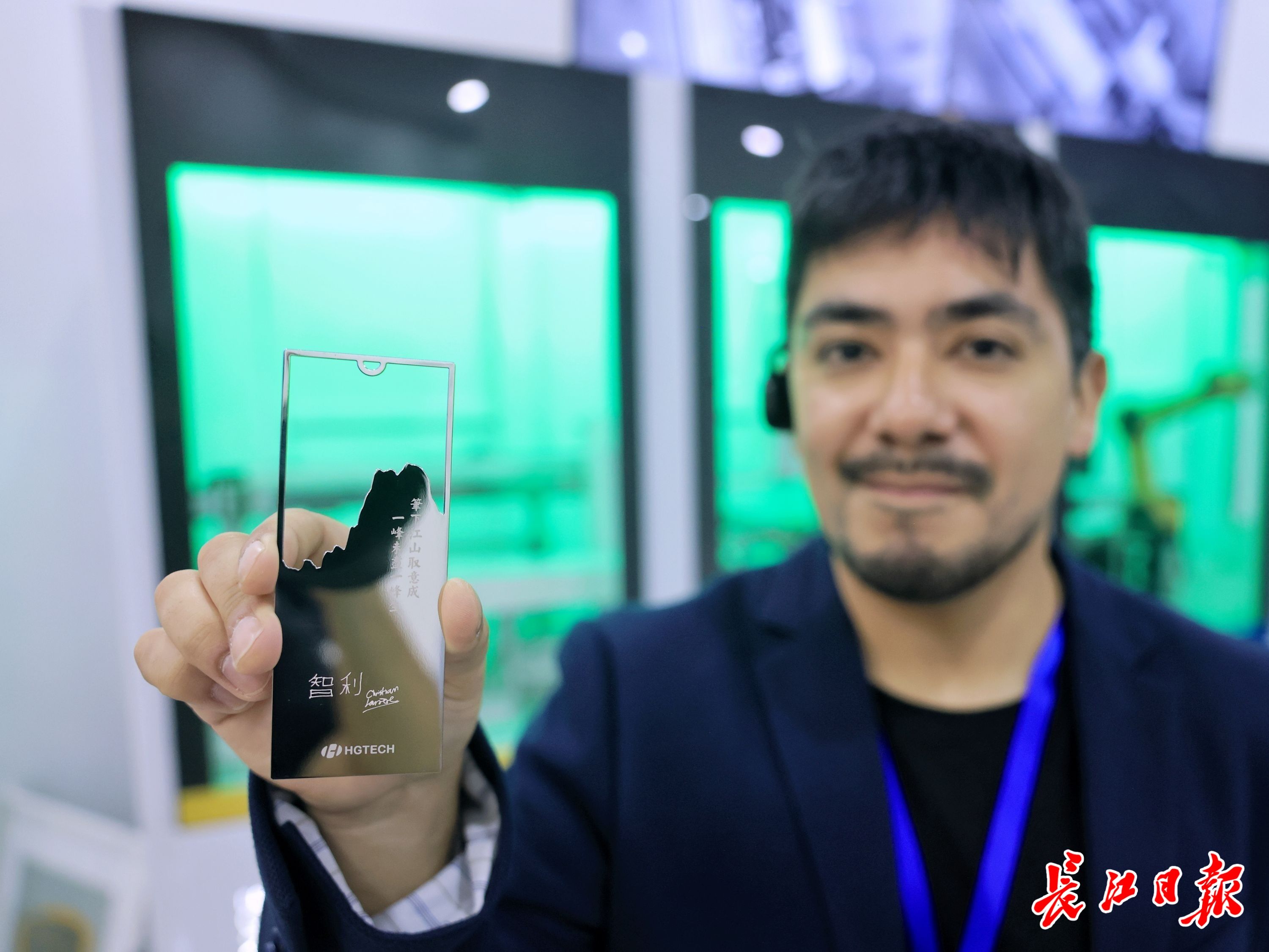 现场一幅宽5米、高4米的“黄鹤楼”金属画吸引了大家的注意。制作需要多长时间?有人猜测至少要5个小时,但当得知使用华工激光设备仅需10分钟时,泰国曼谷市国际关系官员通英卡素·提迪坤不由自主发出一声“Wow(哇)!”。嘉宾们纷纷掏出手机,与这幅用激光技术重新定义的黄鹤楼合影。“无法想象,如果我们用传统工艺来制作这个比一层楼(一般房子层高3米)还高的金属画,需要多长时间?而你们只用了10分钟!”巴勒斯坦拉马拉市国际关系部负责人哈姆扎·达利亚边拍照边感慨。