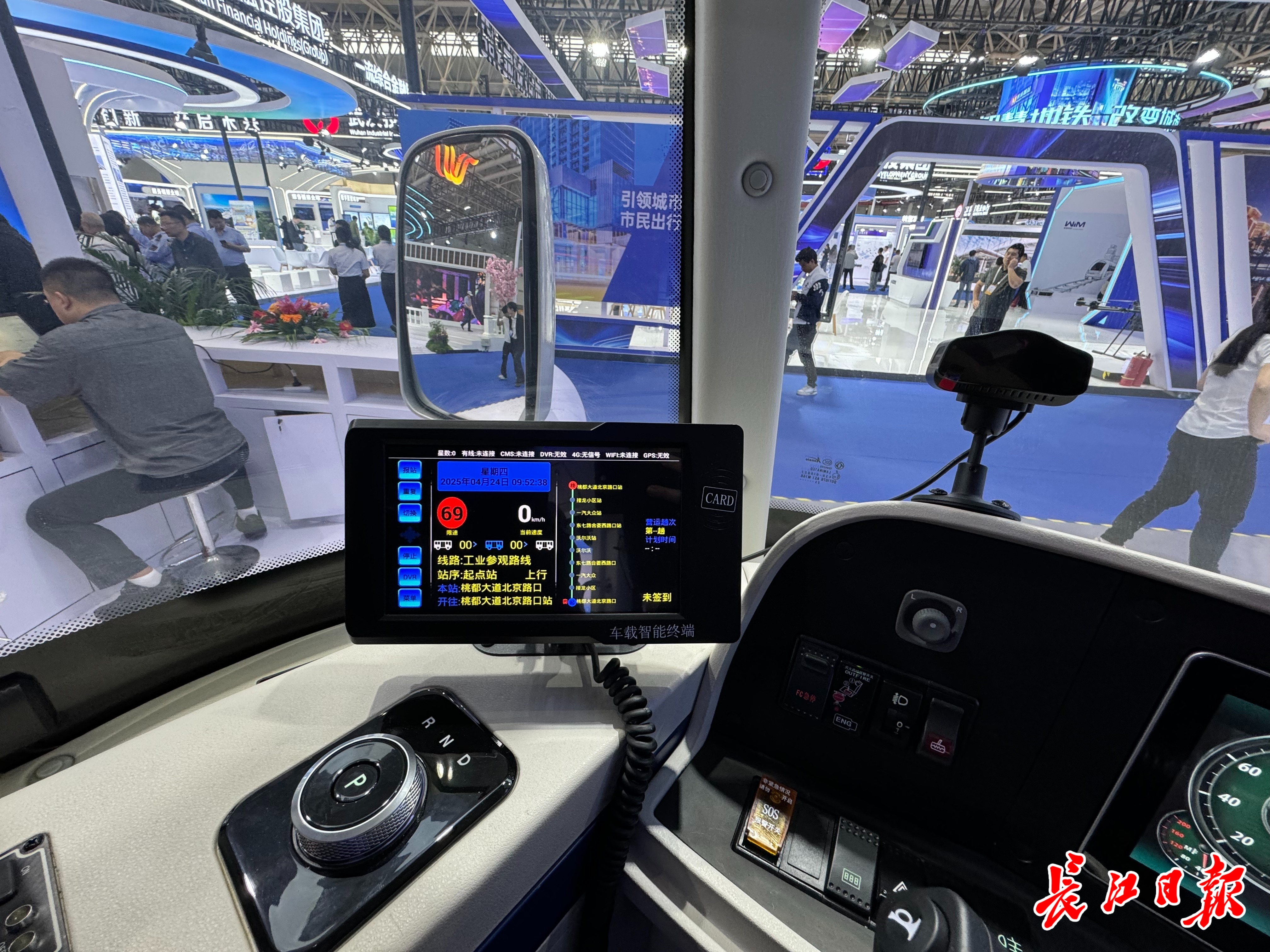 武汉公交集团展台,一台东风悦享自动驾驶巴士吸引人注意。长江日报记者 陶常宁 摄