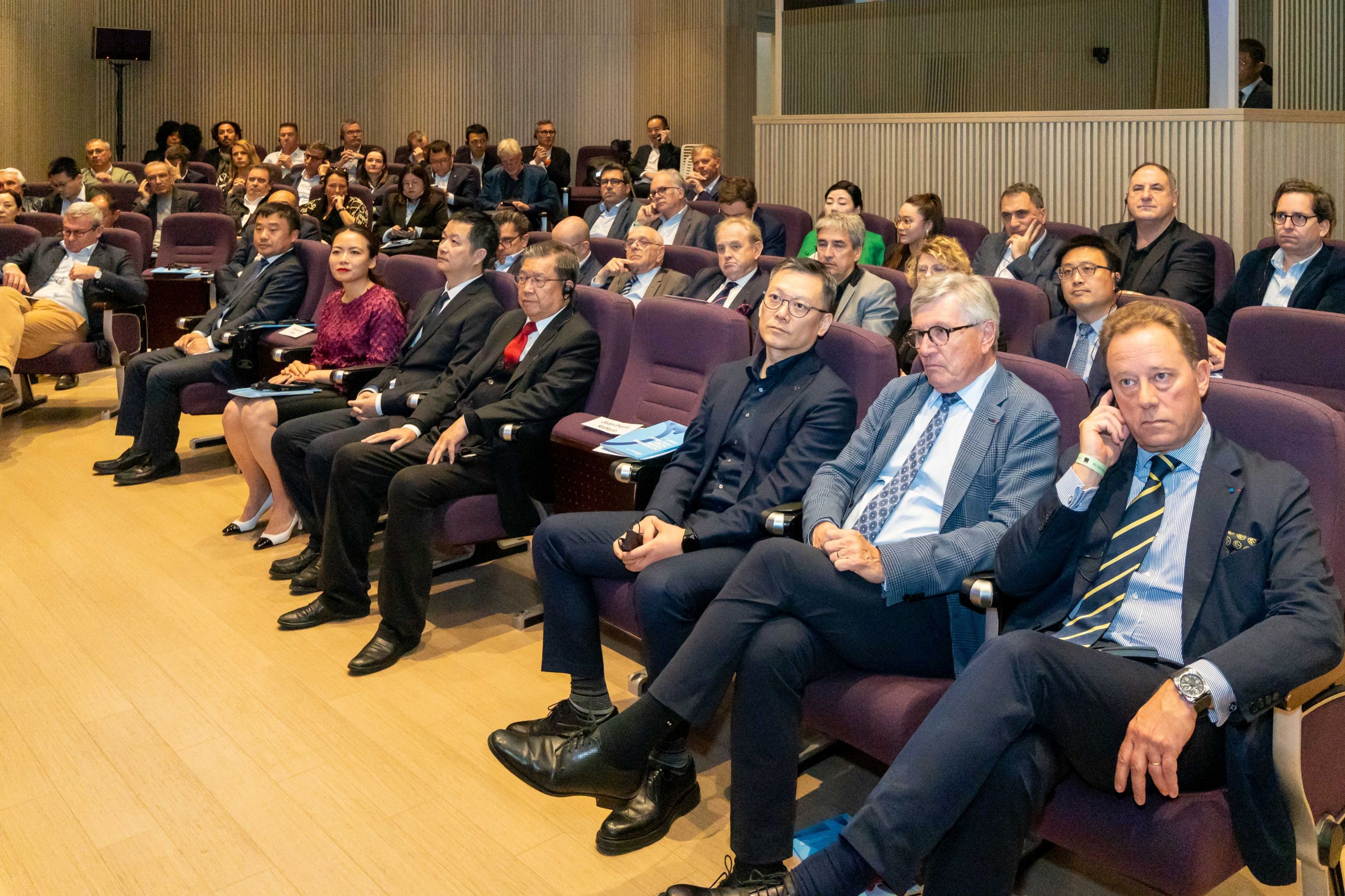 4月25日下午,上海震旦国际大楼,一场原本设有92个座位的会议厅,迎来了上百位法国汽车行业代表、专家和企业嘉宾。人数超出预计,组织方只得紧急在过道上加凳子。“有法国嘉宾是从车展现场赶来的,还有的刚下飞机就直奔这里。”现场工作人员感叹,场内座无虚席,气氛热烈。