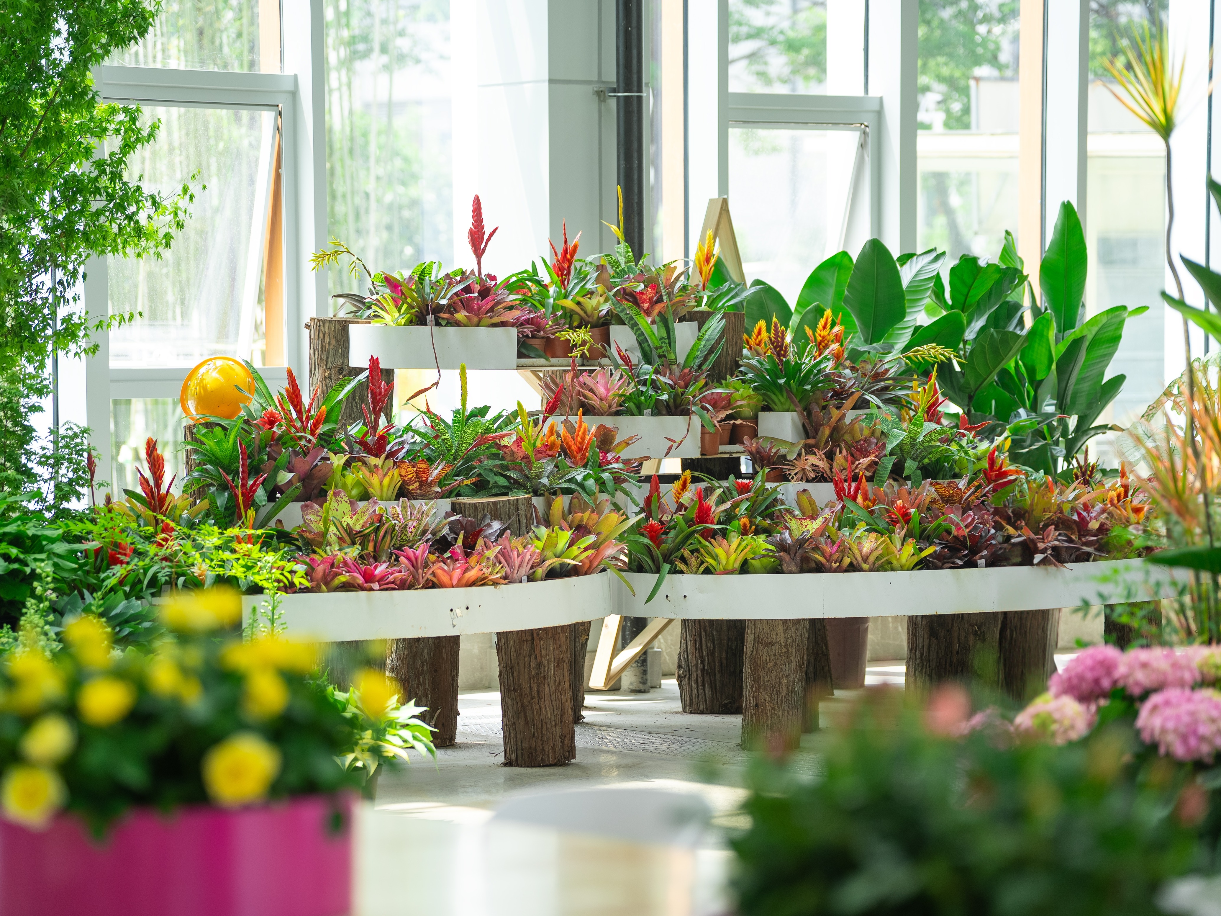 这里以花车、花箱、花台、花桌、花窗、花瓶等形式分类展示月季、杜鹃、绣球、芍药、大花葱、非洲菊等新优花卉,展厅内姹紫嫣红、花香扑鼻。