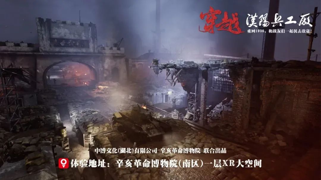 《穿越·汉阳兵工厂》突破传统历史叙事,它集成了MR空间定位、动作捕捉、多人联机、地形自适应系统等众多最前沿的综合跨界技术,使用VR技术搭建360度立体虚拟战场实景。