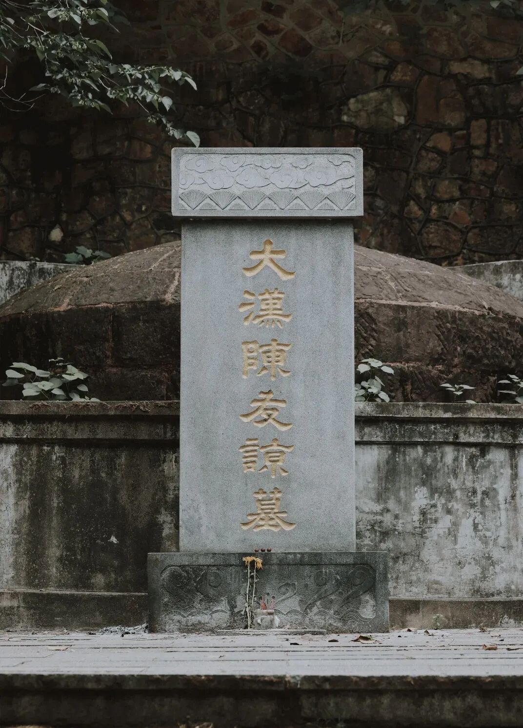 沿着幽深的巷子往里,沿坡而上,有陈友谅墓和陈定一烈士就义纪念碑。林木森森,石碑矗立其间有种悲凉慨然的古意。