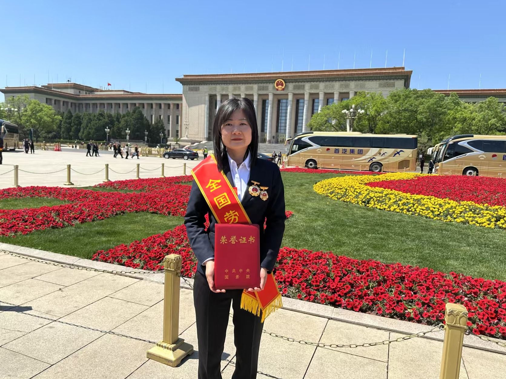 李云飞获奖后在人民大会堂外留影。