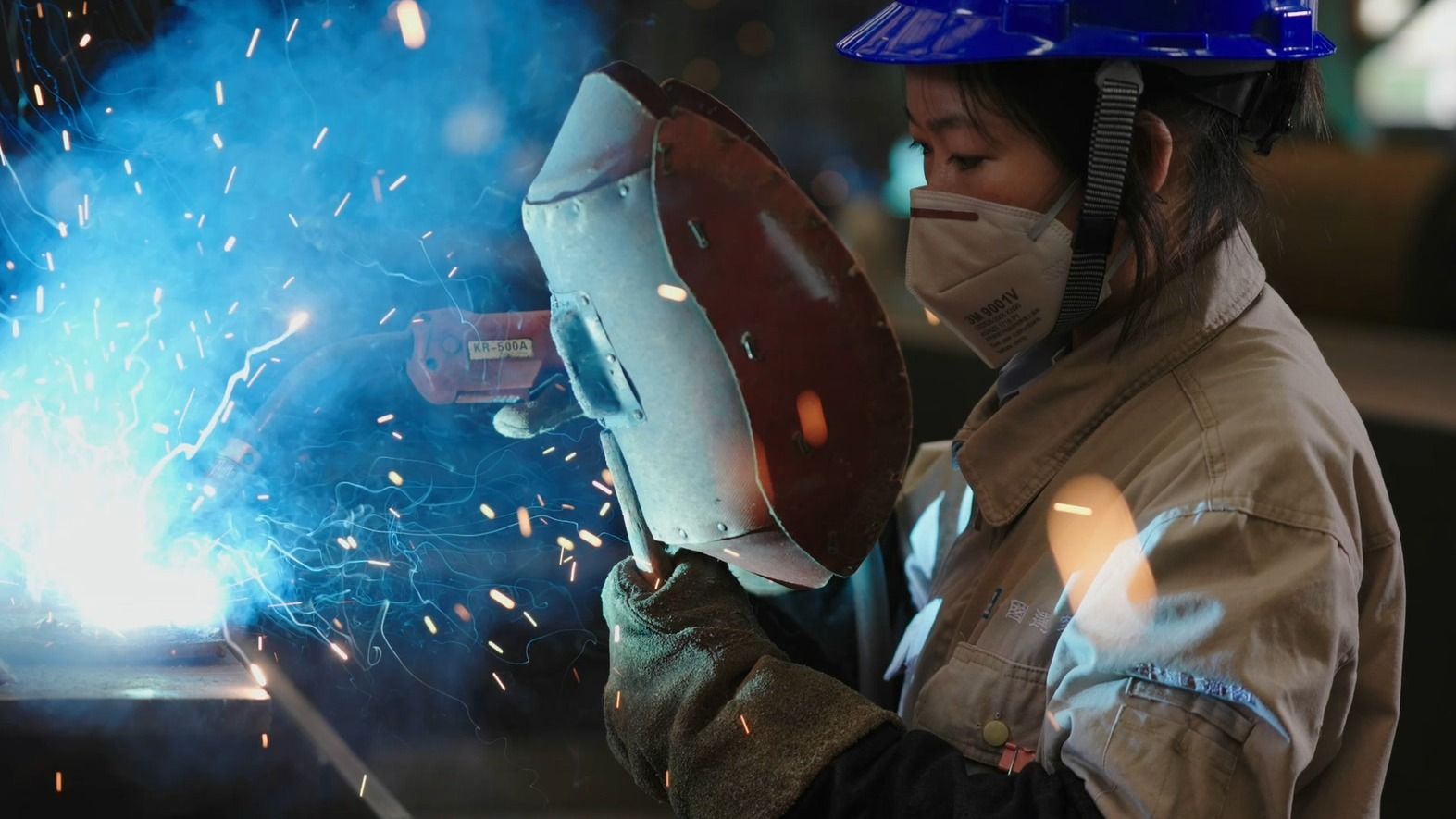 真拿起焊枪,李云飞没少掉眼泪。护目镜没罩好,眼睛又红又肿。夏天的车间高温夹杂着烟尘,老师傅们可以敞开衣服凉快,她只能不停给自己灌水。一天干下来,汗水浸透工服,结出盐霜。