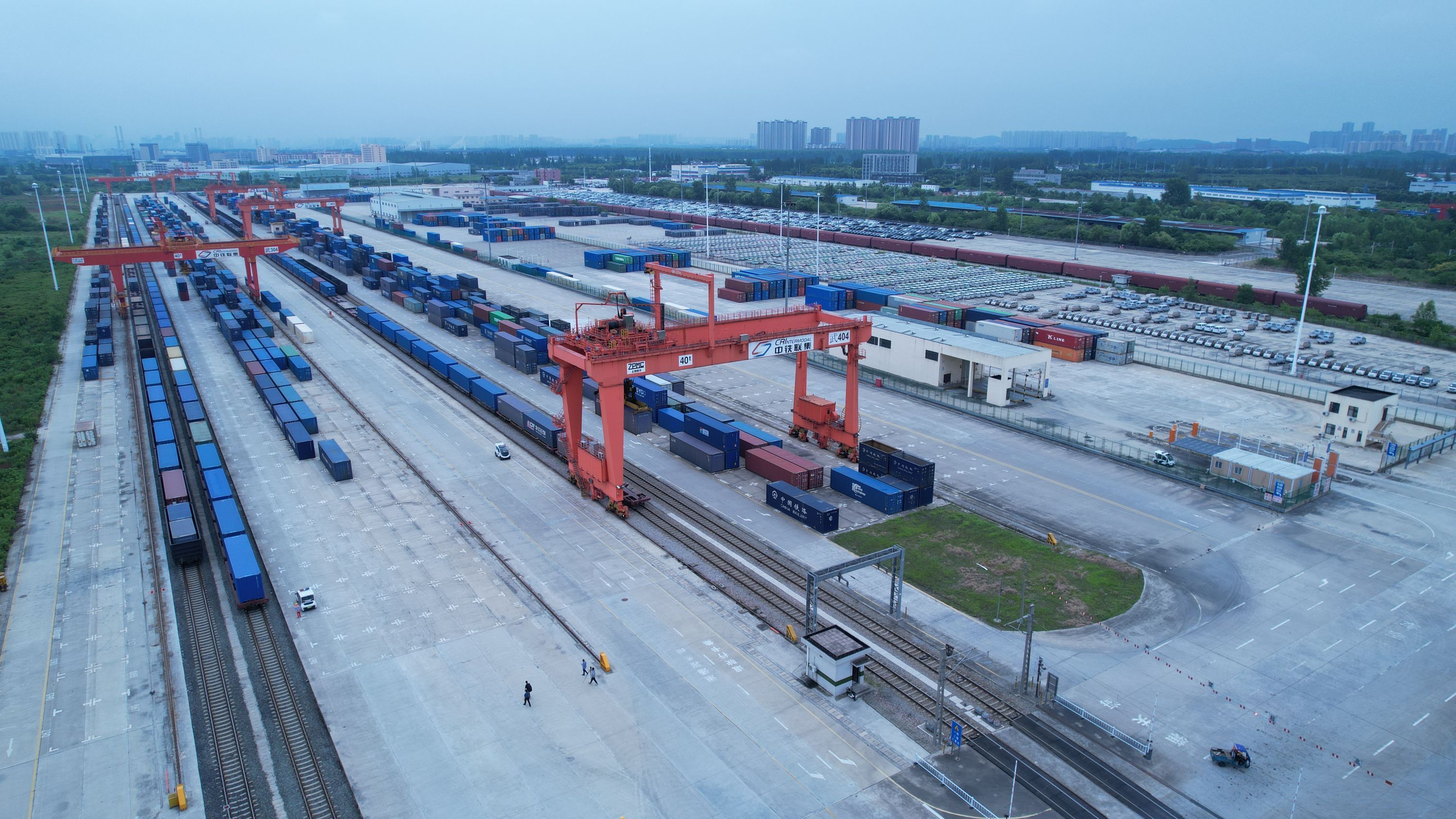 “现在,我们每周发出公共班列7列,湖北本地货源占比七成,本地的光电、机械制造、新能源汽车及汽配、光伏等产品可直达德国、法国、英国、波兰、匈牙利、俄罗斯、白俄罗斯、中亚等地区。”中铁联集武汉中心站运营部经理梅青平介绍。
