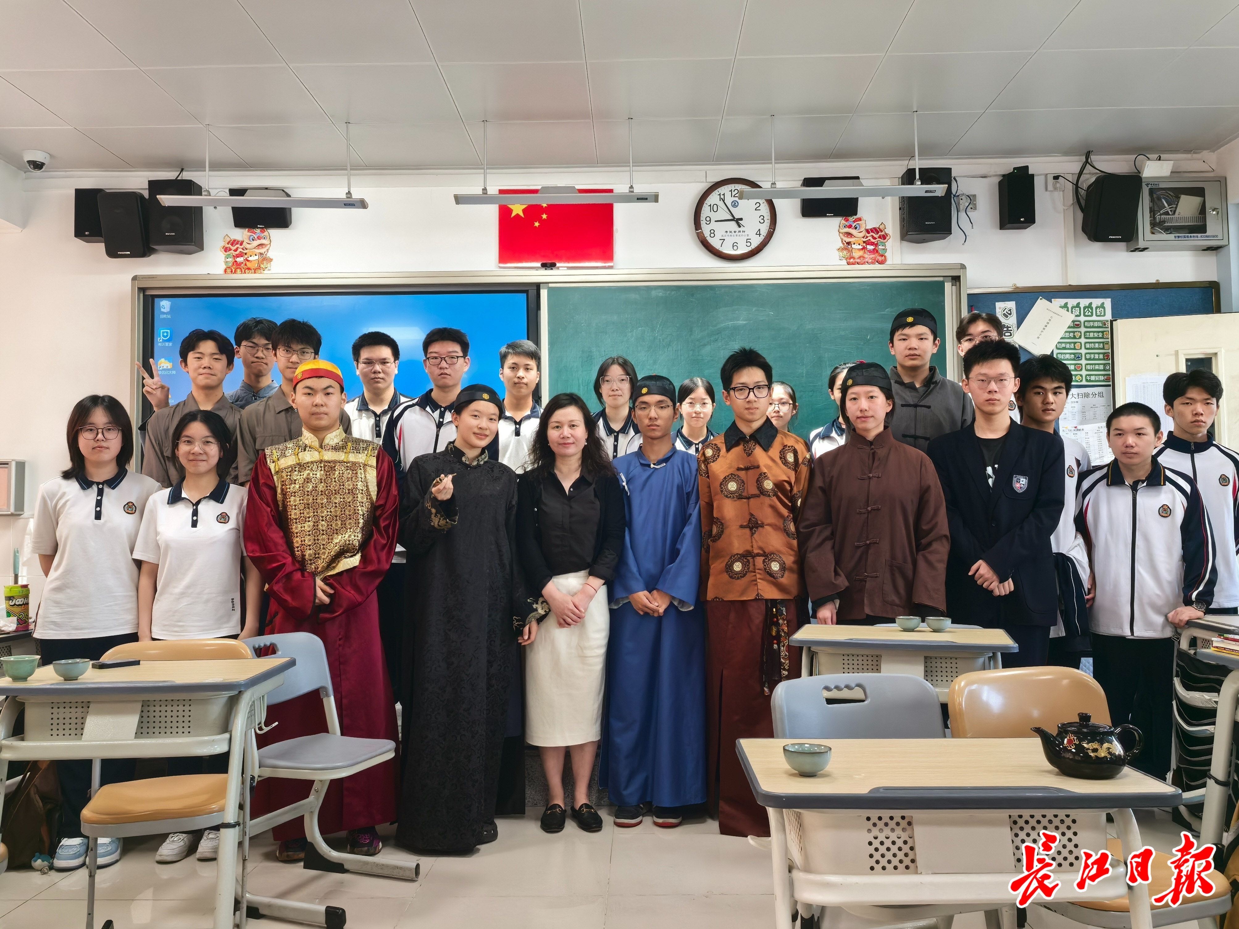 长江日报大武汉客户端4月30日讯(记者覃柳玮)“我说这位爷,您是营里当差的吧?来,坐下喝一碗茶,我们也都是外场人……”29日上午八点半,水果湖高中高二3班的学生们在语文老师毕小燕的带领下,“穿越”到1898年的北京裕泰大茶馆。把情景式教学融入语文课堂是毕小燕的教学妙招。