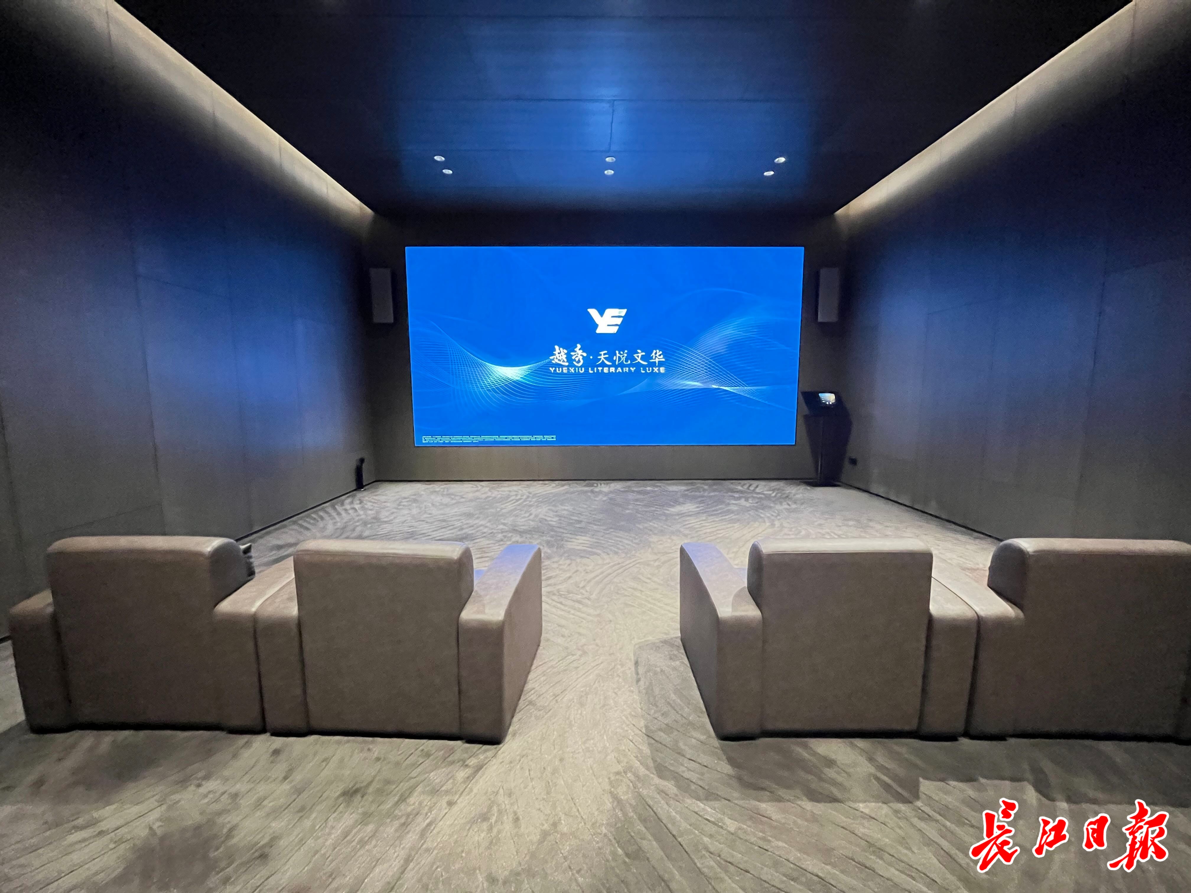 记者沿着覆盖整个小区的风雨连廊,来到影音馆。余清鸿介绍,为了让业主在观看电影中感受到震撼的视听体验,项目特意对标专业影院,邀请专业工程师根据声波位置,进行精准定位。同时,墙面做了硬包的分缝硬包造型,配合照明及特殊的消音基层,达到规范隔音标准。