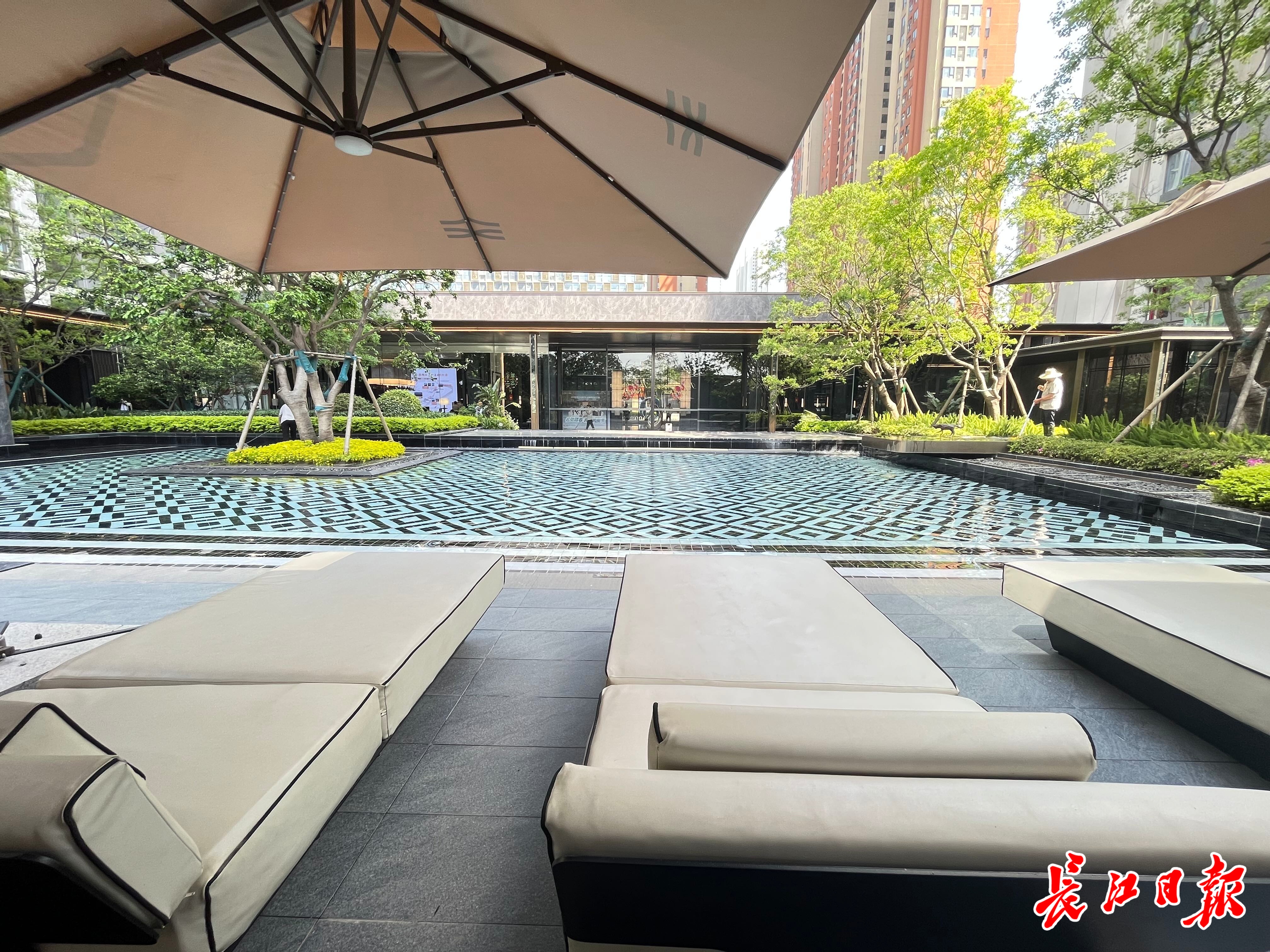 中央水景营造出了海边度假的惬意。记者冷靖华摄