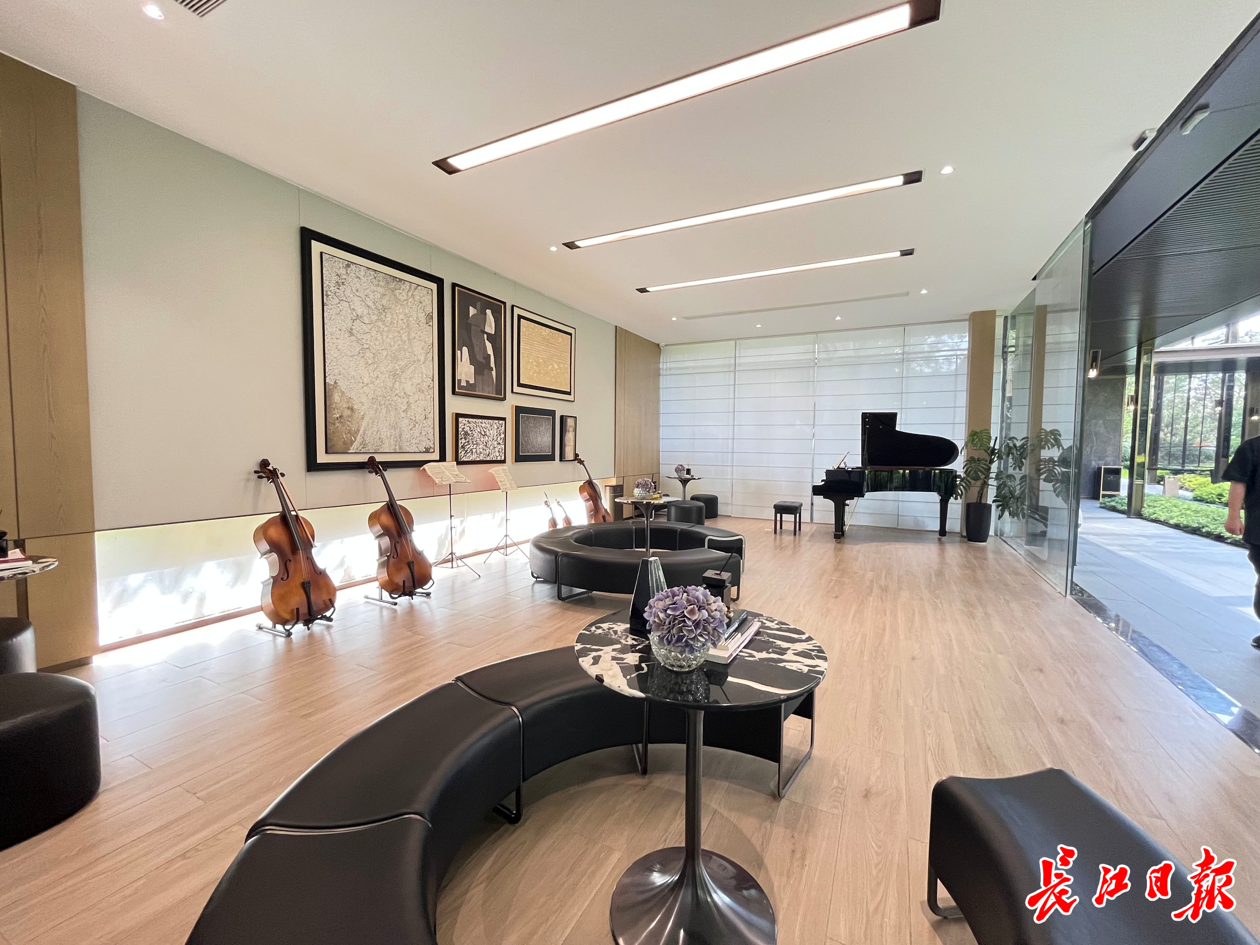 在音乐厅,三角钢琴、吉他、小提琴等各类乐器一应俱全。“学乐器的孩子都能来这里练习。”余清鸿说。