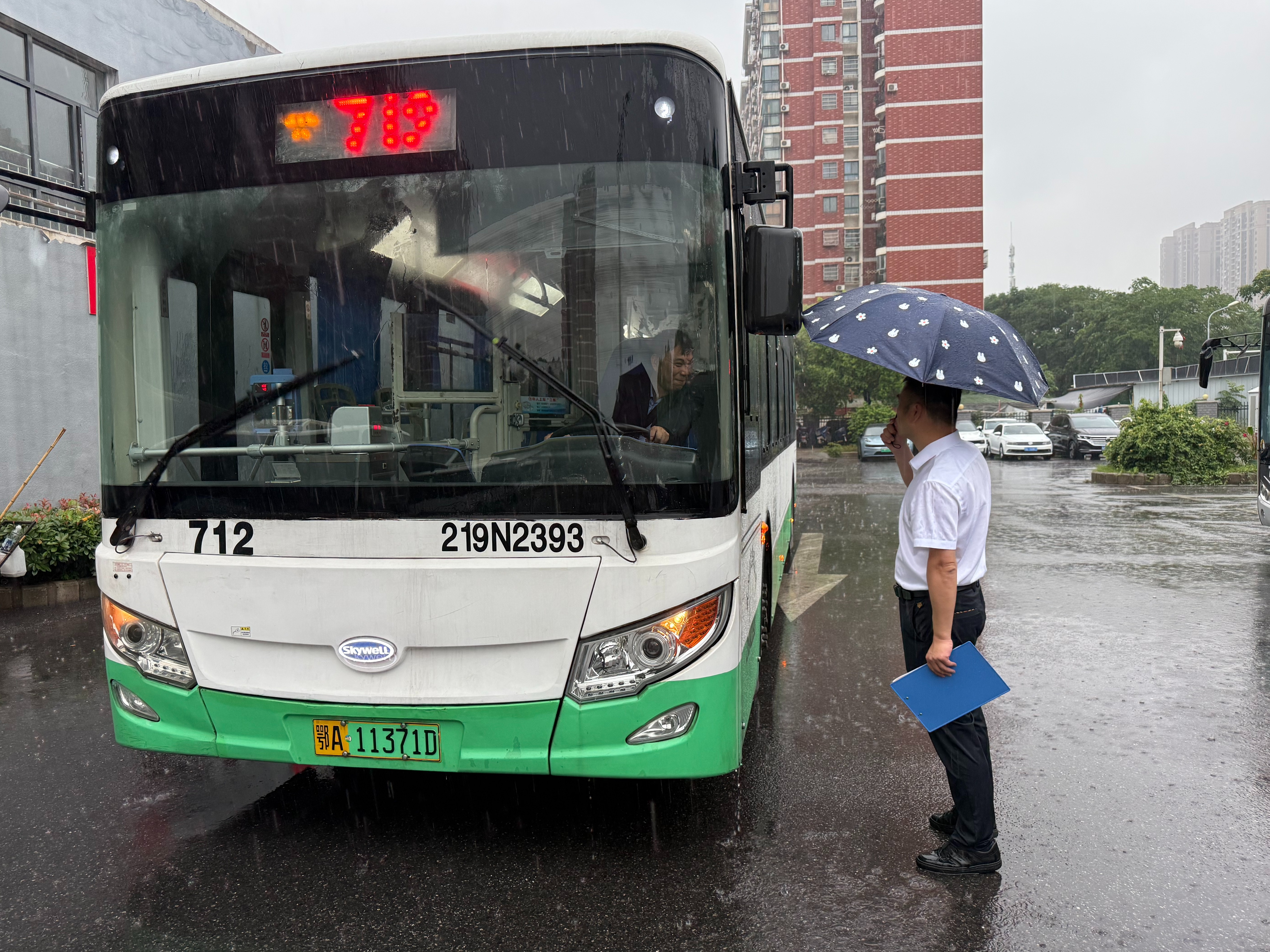 长江日报大武汉客户端5月8日讯 5月8日清晨7时20分,在318国道铁炉村公交站点,武汉公交三公司十一车队队长熊义正反复叮嘱288路驾驶员:“雨天视线不好,减速慢行,注意与非机动车、行人保持横向距离,积水深的地方不要强行通过。”