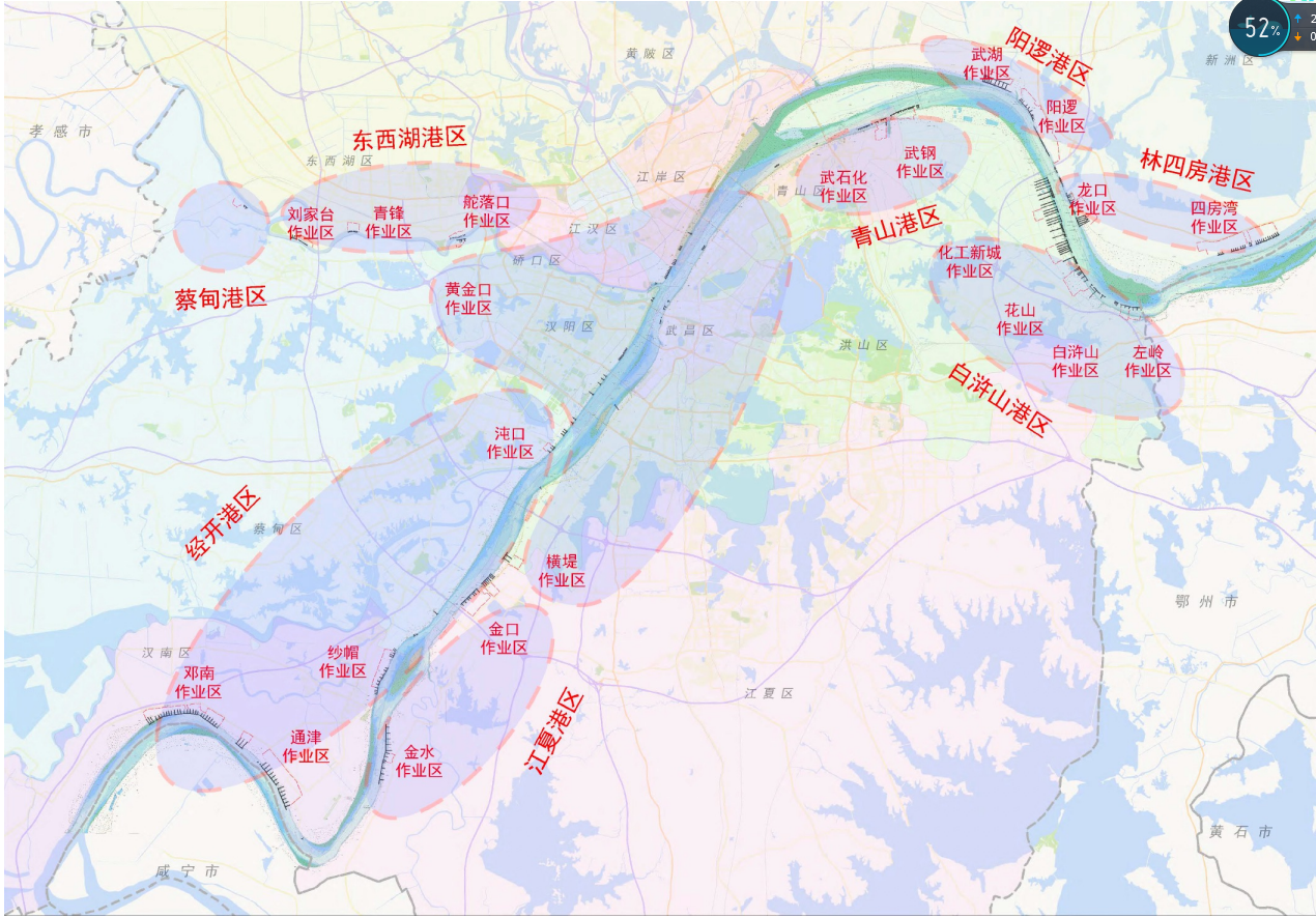 林四房和蔡甸港区:以大宗散货、件杂货运输为主,主要服务临港经济。