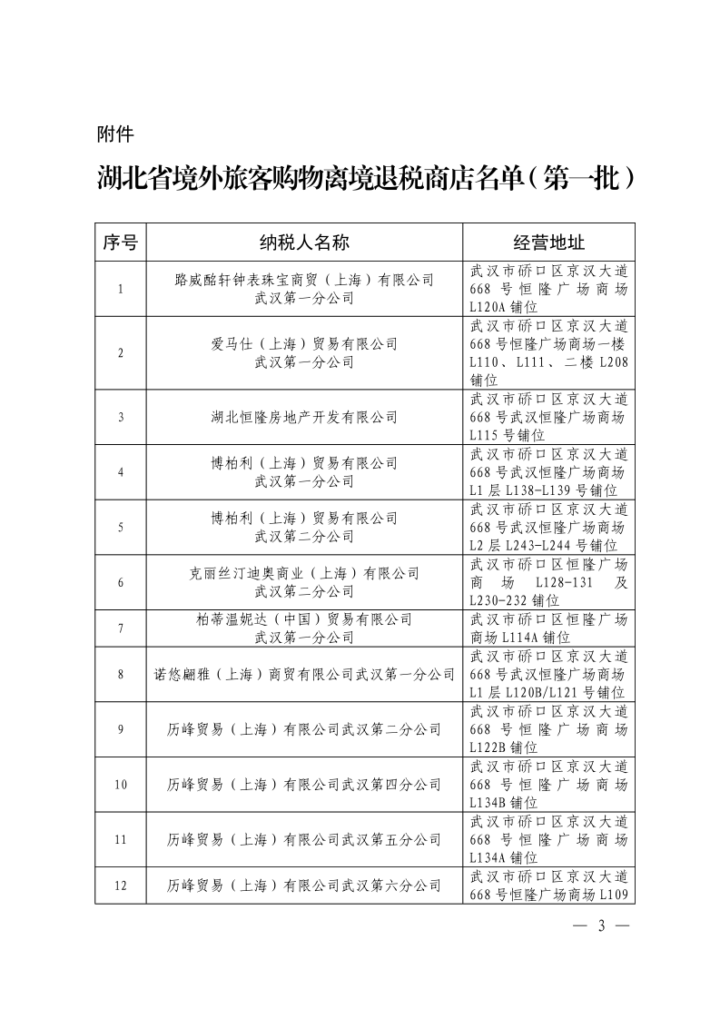 湖北首批境外旅客购物离境退税商店名单发布,武汉33家企业上榜 ©原创 2025-05-09 19:54 0 长江日报大武汉客户端5月9日讯(通讯员赵燕)4月30日,国家税务总局湖北省税务局、湖北省商务厅、湖北省财政厅、湖北省文化和旅游厅四部门联合公布湖北省第一批境外旅客购物离境退税商店名单,其中武汉33家企业在列。 【编辑:陈麒麟】