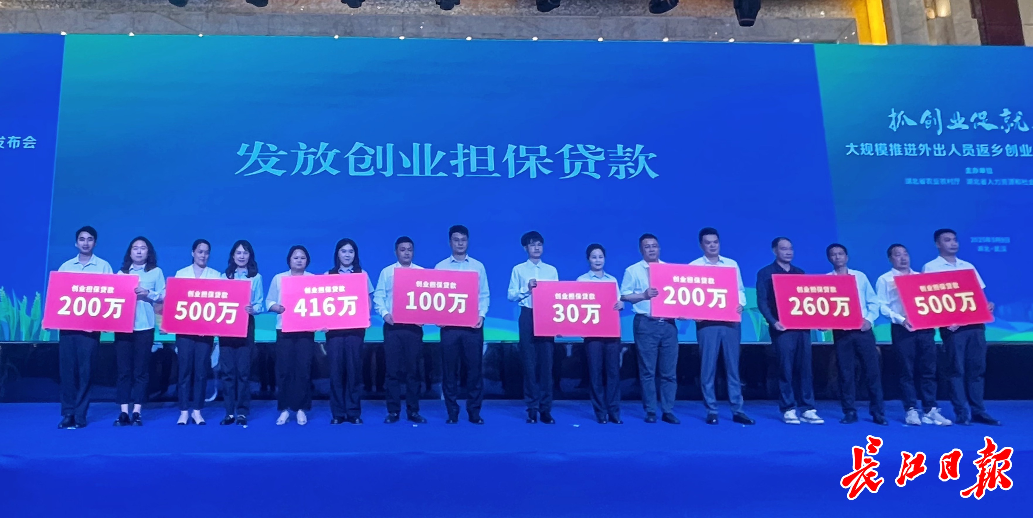 长江日报大武汉客户端5月9日讯(记者刘晨玮 刘克取)“解了我们的燃眉之急,让我们对未来发展更有信心。”9日,在湖北省“抓创业促就业”系列行动之大规模推进外出人员返乡创业行动发布会上,武汉普创数据科技有限公司收到汉口银行江汉支行发放的500万元担保贷款,该公司负责人表示,将把这笔贷款用于研发工作。现场,省内8家企业共获得创业担保贷款共计2206万元。