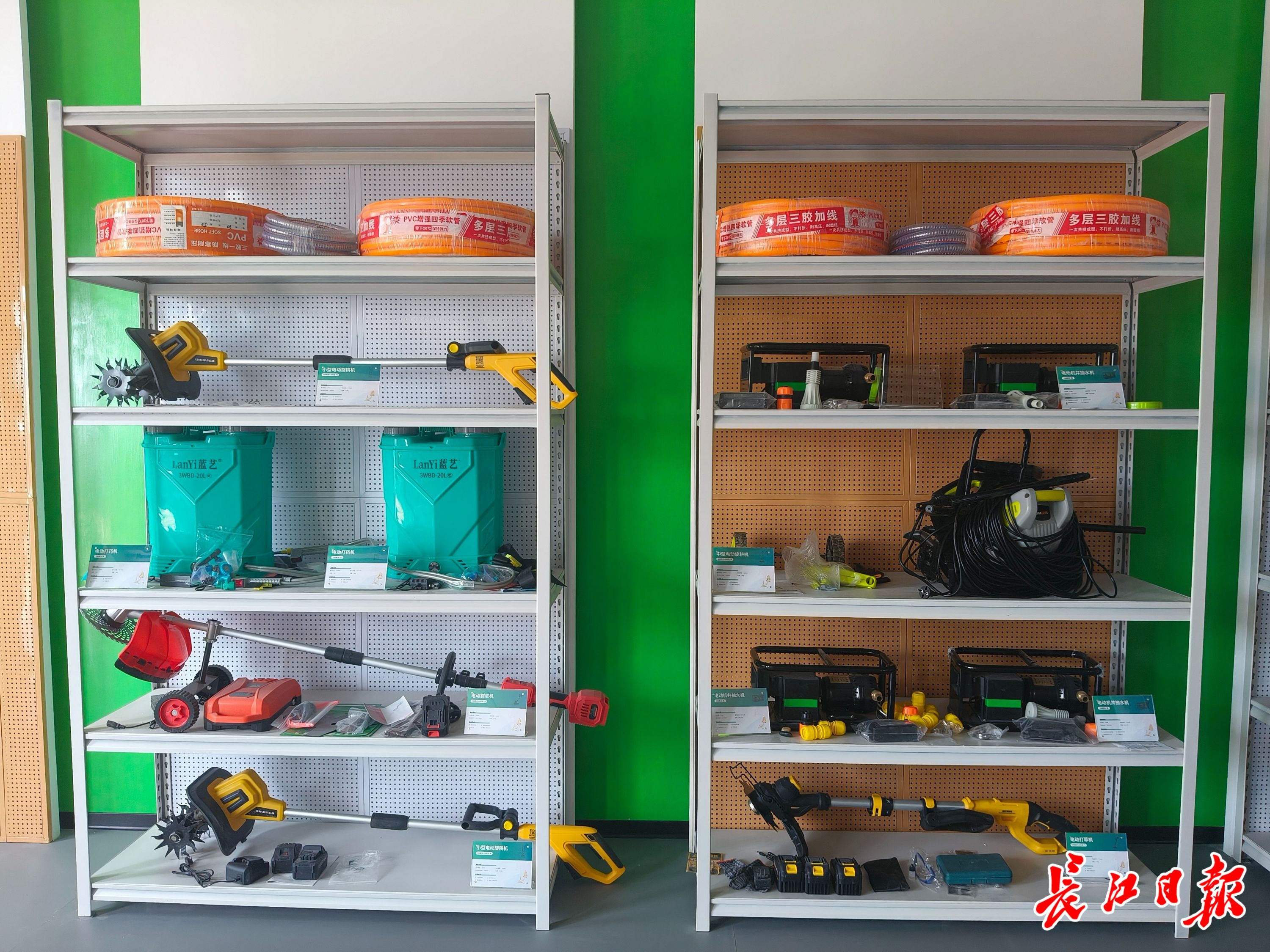 在豫迁村共享电动农机具服务点,各类电动农具琳琅满目。长江日报记者刘海锋 摄
