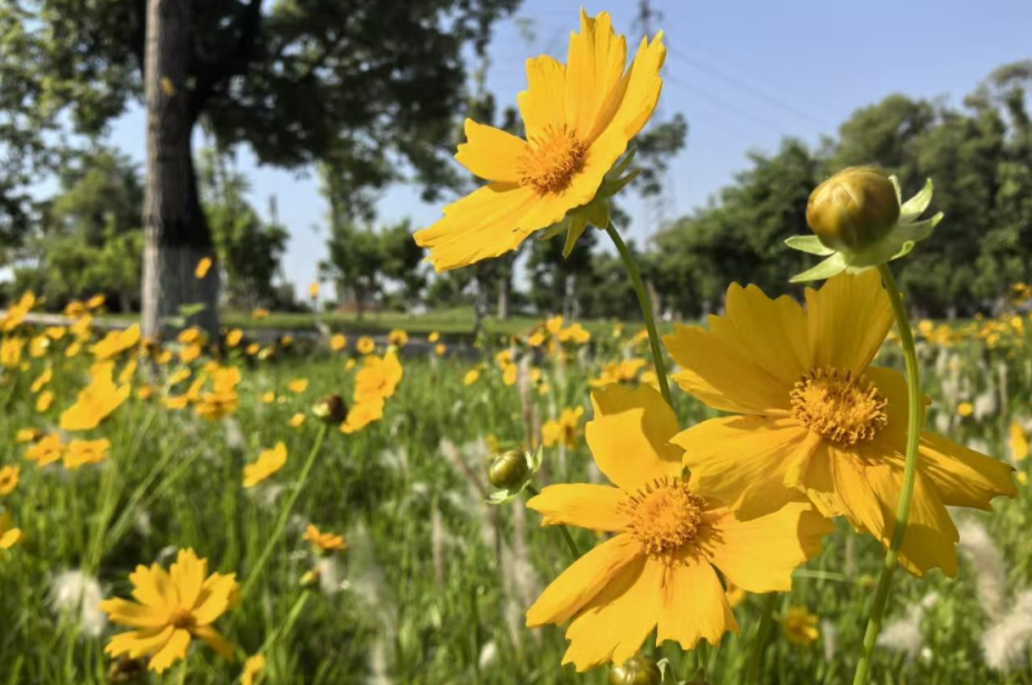 5月13日,武汉市白玉公园内呈现出一派绚烂多彩的花卉景观,韭莲与金鸡菊分别在不同区域热烈盛开,为市民带来了一场视觉盛宴。(徐桂芳供图)
