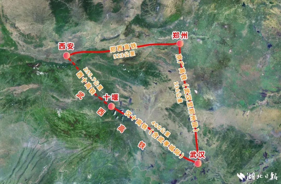 据了解,西十高铁西起陕西西安,向东南穿越秦岭山脉,经商洛,终点为湖北十堰,正线全长255.76公里,设计时速350公里。预计2026年通车后,武汉至西安3小时左右可达,十堰至西安1小时左右可达。