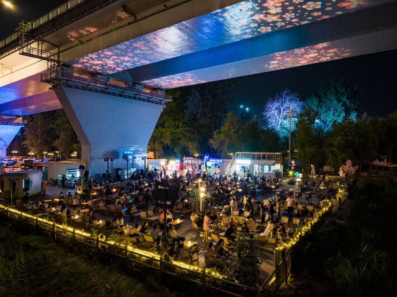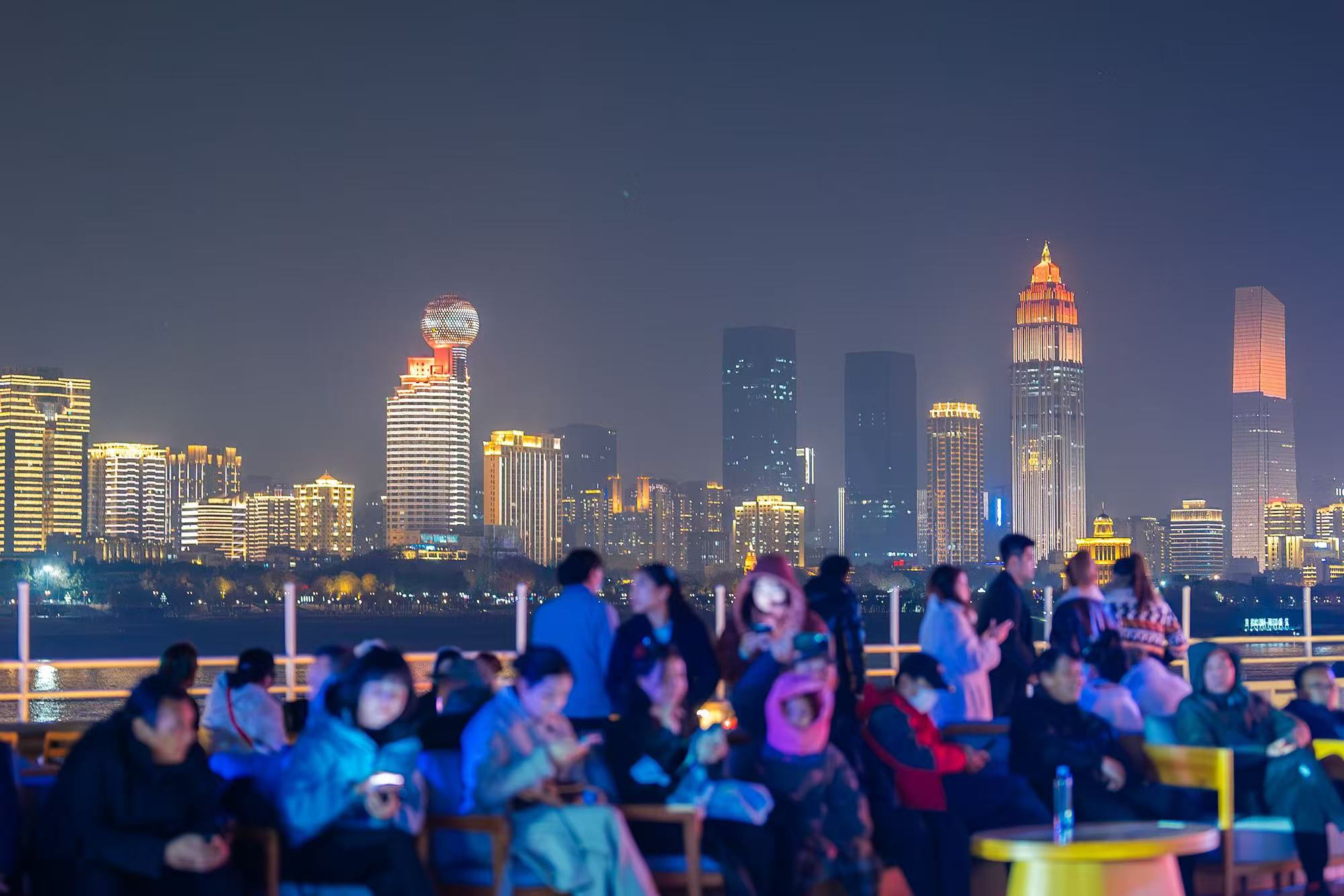 长江二桥下,武汉将露天电影玩出新花样。坚实桥墩化身巨型电影幕布,江滩变为别具一格的露营地,年轻人围坐在此,看露天电影、赏美好江景。“江遇——桥墩电影”自营业以来,吸引众多年轻游客光顾打卡,并在社交媒体上主动分享;五一假期更是等位时长近2小时。青山江滩的5号码头餐吧,将塔吊遗址改造成船型空间,机械臂托起夕阳,游客在此吹江风、喝咖啡,解锁江城夜生活新方式。