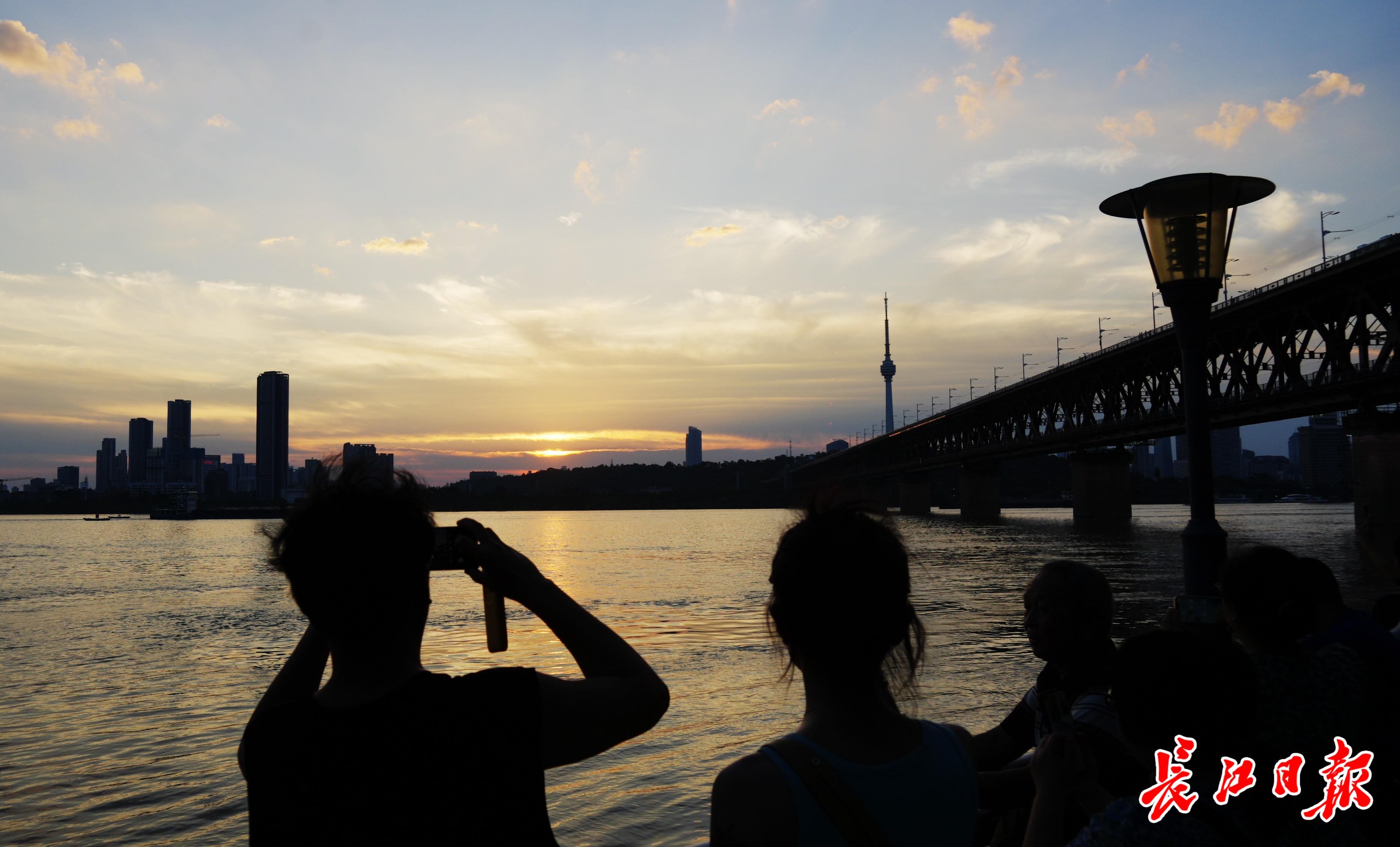 “永远会为武汉的日落橘子海心动!”每至下午5时,在武昌江滩亲水平台与长江大桥上,满是举着相机的年轻人,他们追逐着落日,定格江面被染成橘子色的绝美瞬间。武昌万象城七楼的落日剧场,以高空视角俯瞰长江,玻璃幕墙外,长江如缎带蜿蜒,游轮划出细长水痕,城市与自然在此和谐共生。