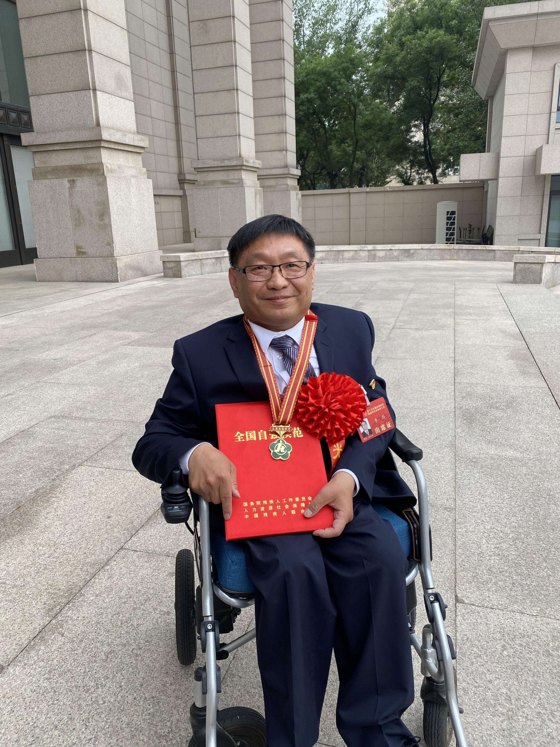 湖北广播电视台音乐广播部首席编辑李筠也获得了“全国自强模范”称号。他是我国约8500万残疾人中的一员。