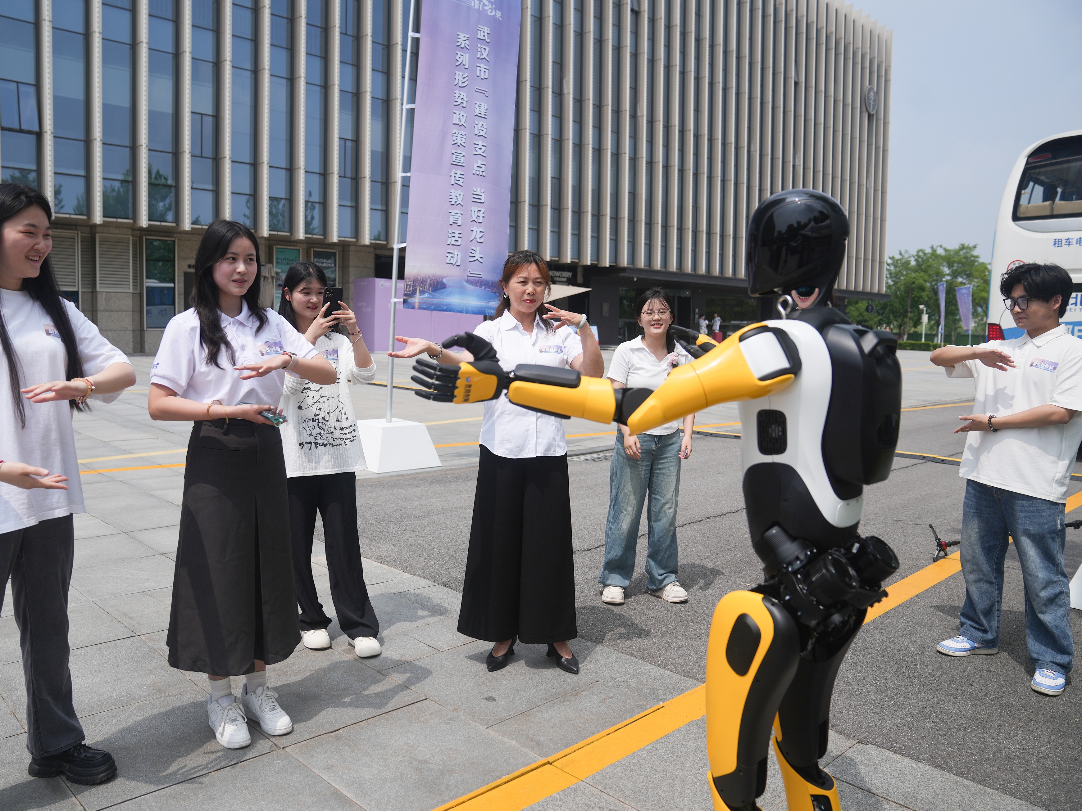 “你们看,机器人可以模仿我跳舞!”在光谷东智人形机器人展位前,大家对人形机器人的仿生智能人机交互惊叹不已。城市观察团成员、湖北大学学生王罗婷兴奋地说:“这就是我未来想从事的工作方向。”