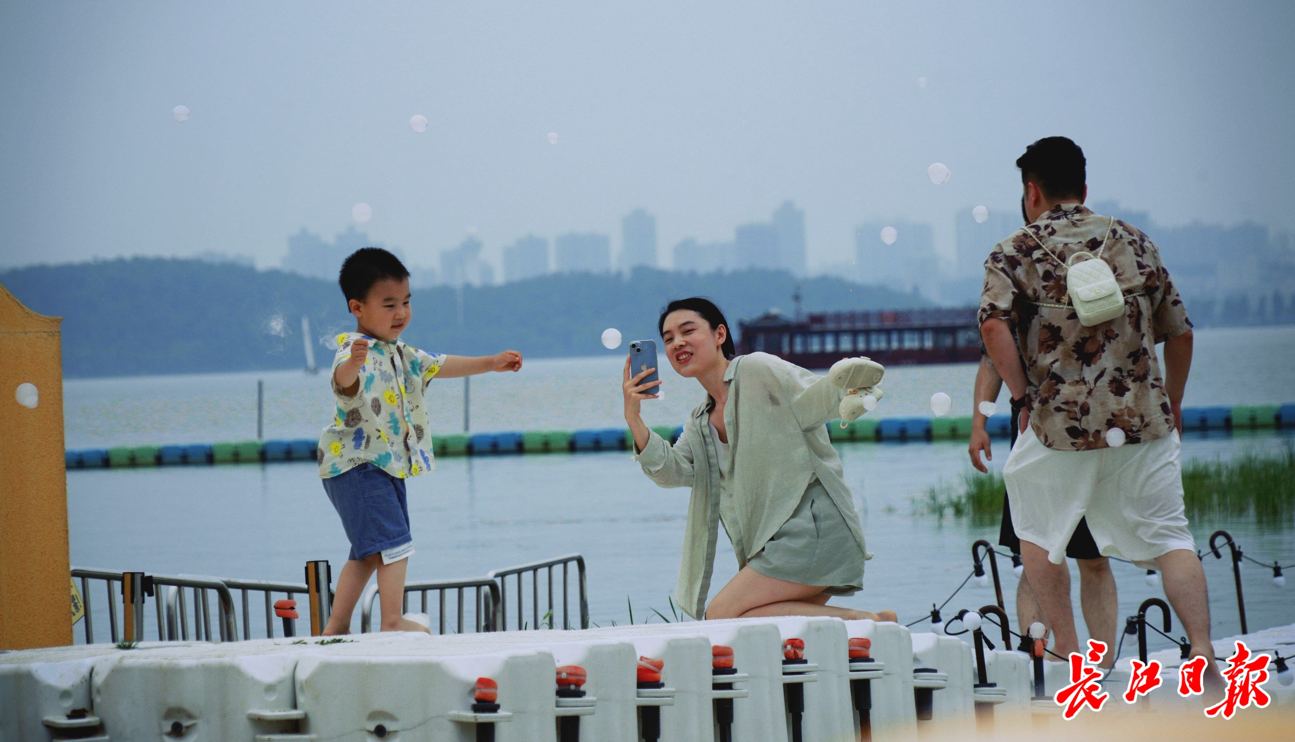 夏季,游客在东湖畔畅游亲水。 长江日报记者何晓刚 摄