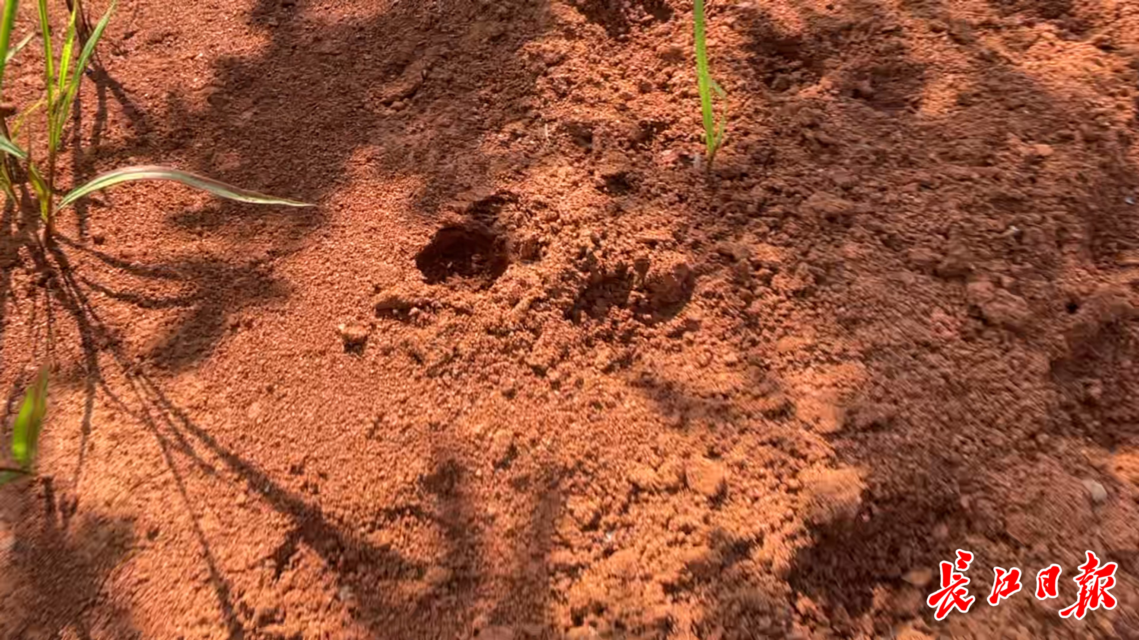 “找到了!这边有野猪脚印!”老林在桃园内的红泥地,发现了新鲜野猪蹄印,但野猪早已不见踪影。无人机再次降低高度侦查,却因植被过于茂密,难以锁定目标。