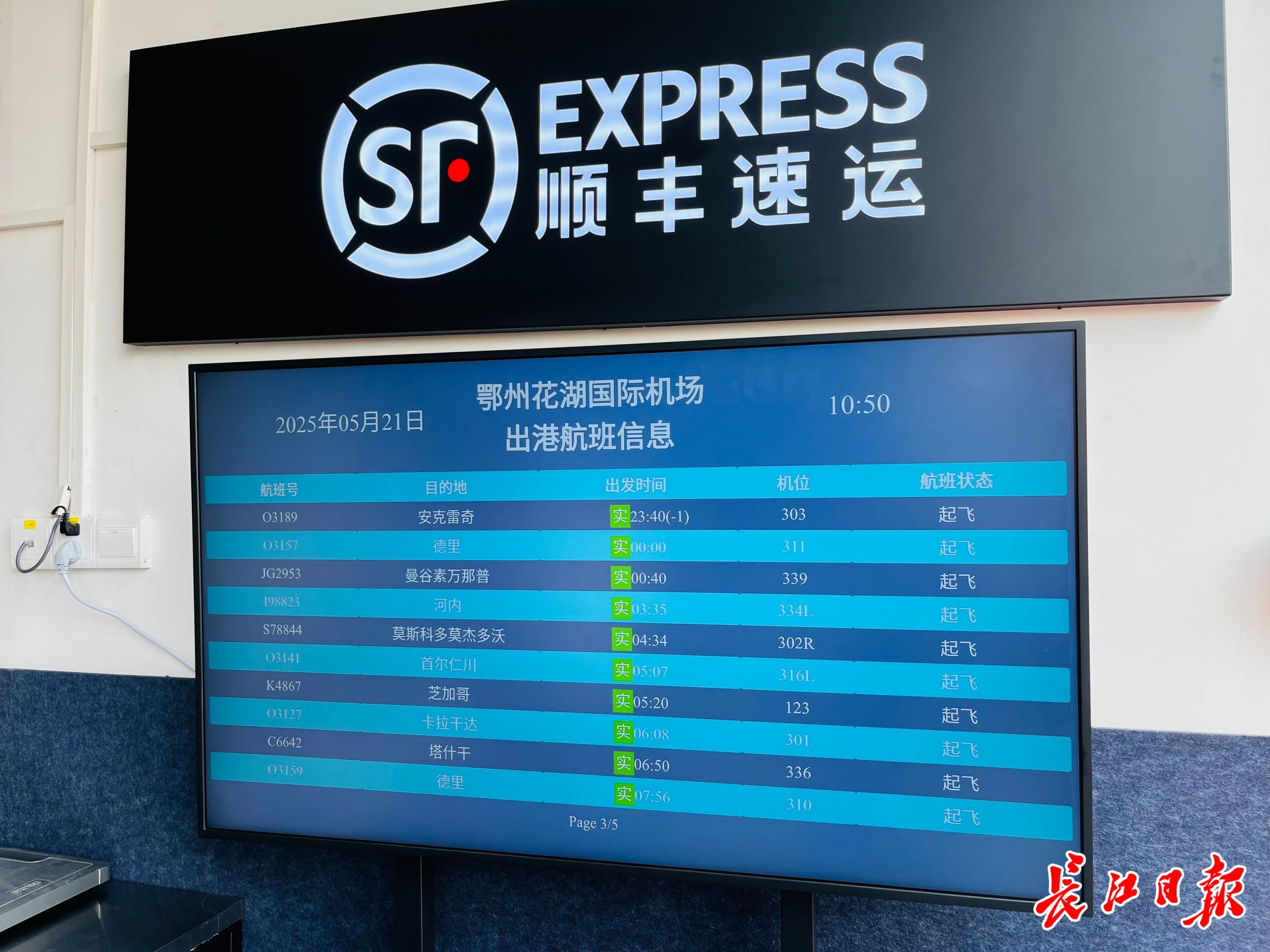 货站内,花湖国际机场出港航班信息可实时显示。长江日报记者高文举摄