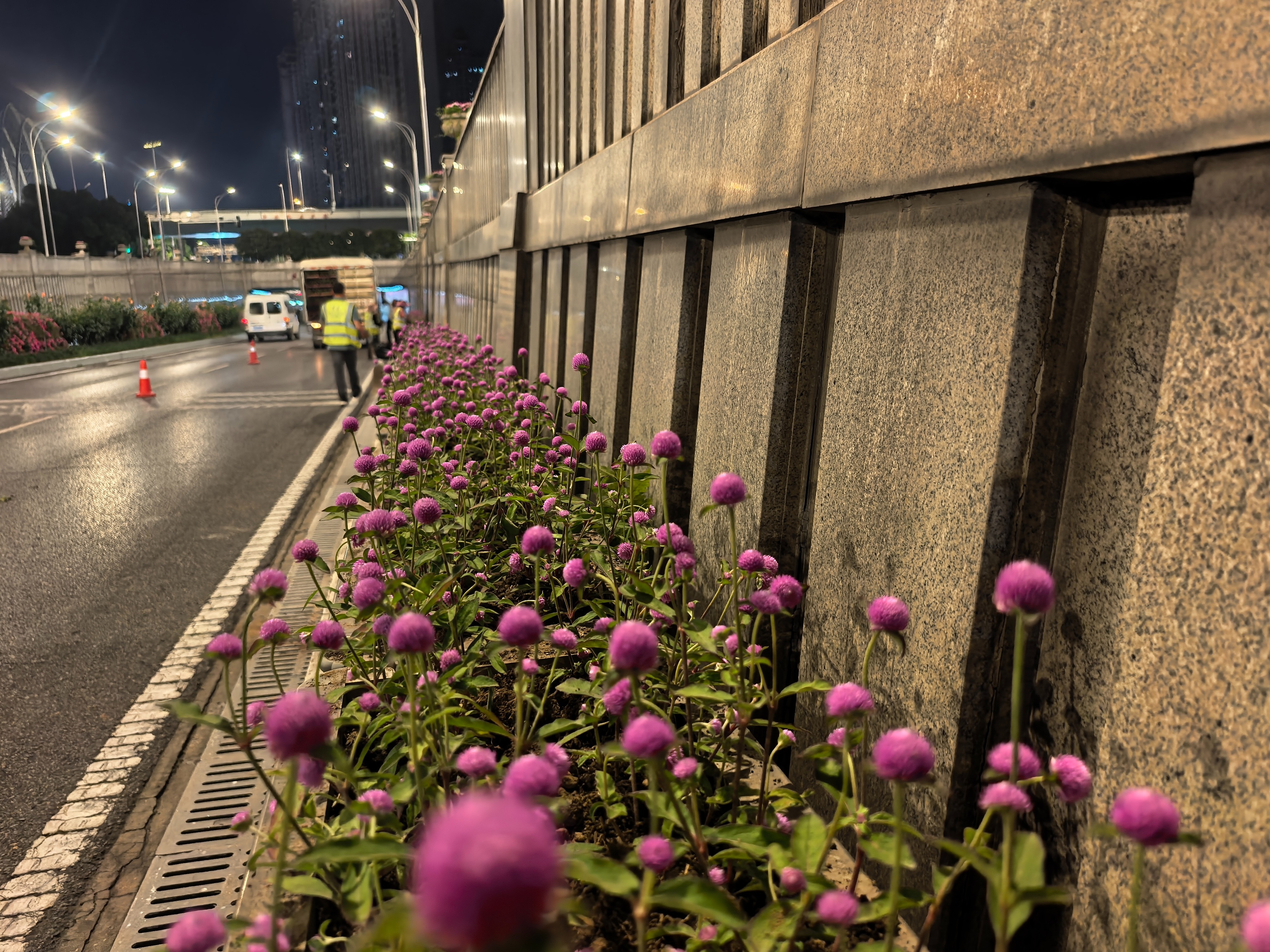 楚汉路地下通道是种花最难、也是最美的花卉景观节点。记者看到,中分带内的月季花姹紫嫣红,与刚上新的繁星花塔组成长约500米的绚丽花带。两侧贴墙各布置了一组低矮花箱,千日红开得正盛。