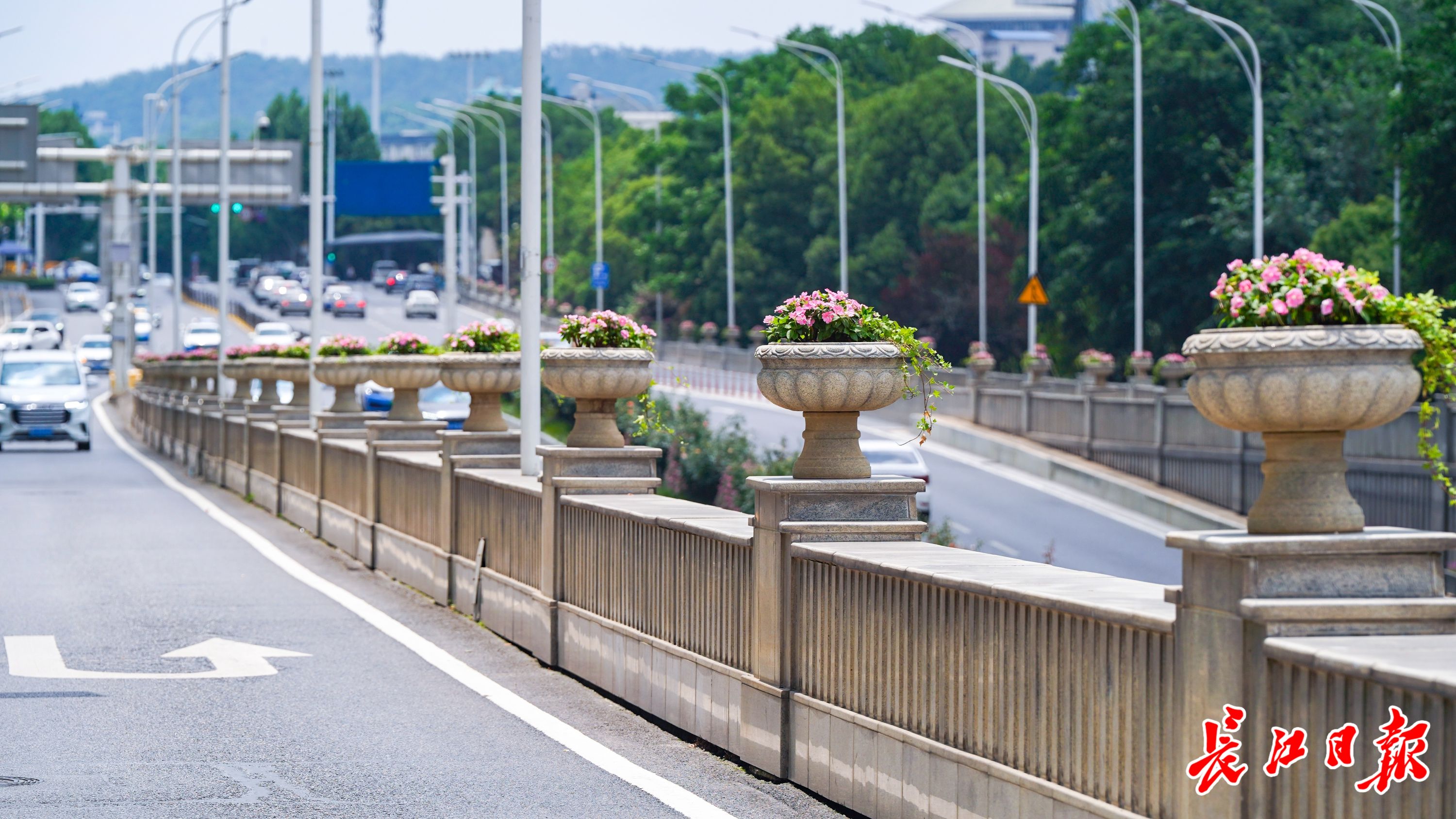 5月23日,长江日报记者现场探访发现,楚汉路全程有花,眼下刚刚完成换花。