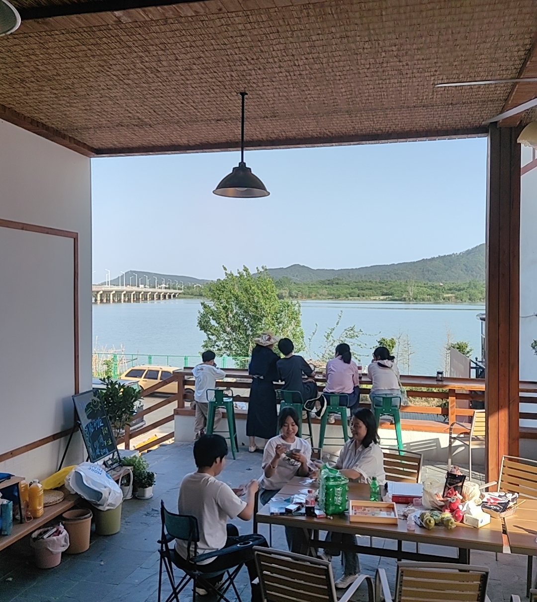 2017年,渔业村完成美丽乡村改造。2019年,嵩阳大道通车,一桥跨过渔业村通进村里。那年起,一家家民宿在村里开起来,进村的游客也越来越多。