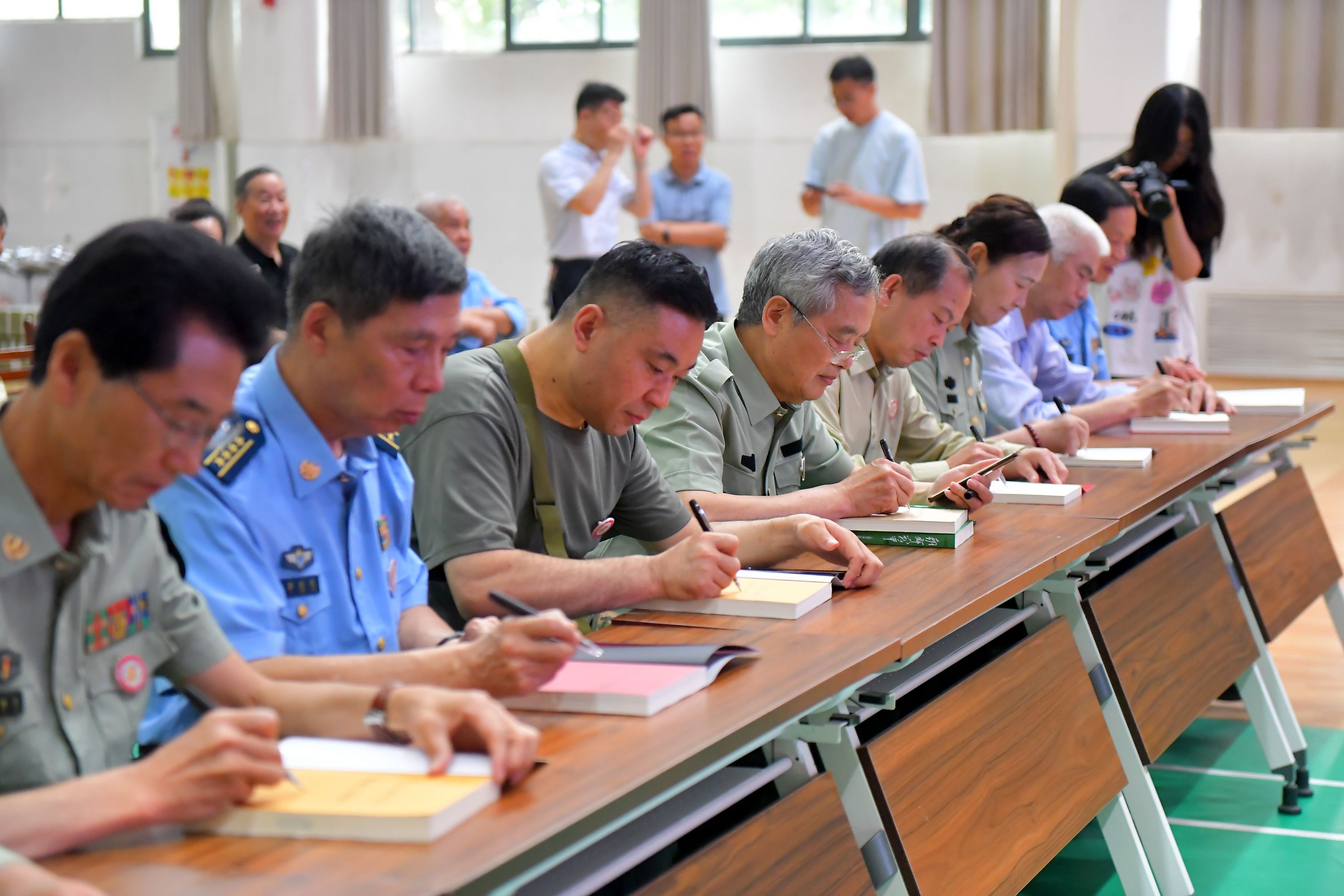 军休干部在赠送给孩子们的书籍上写下寄语。