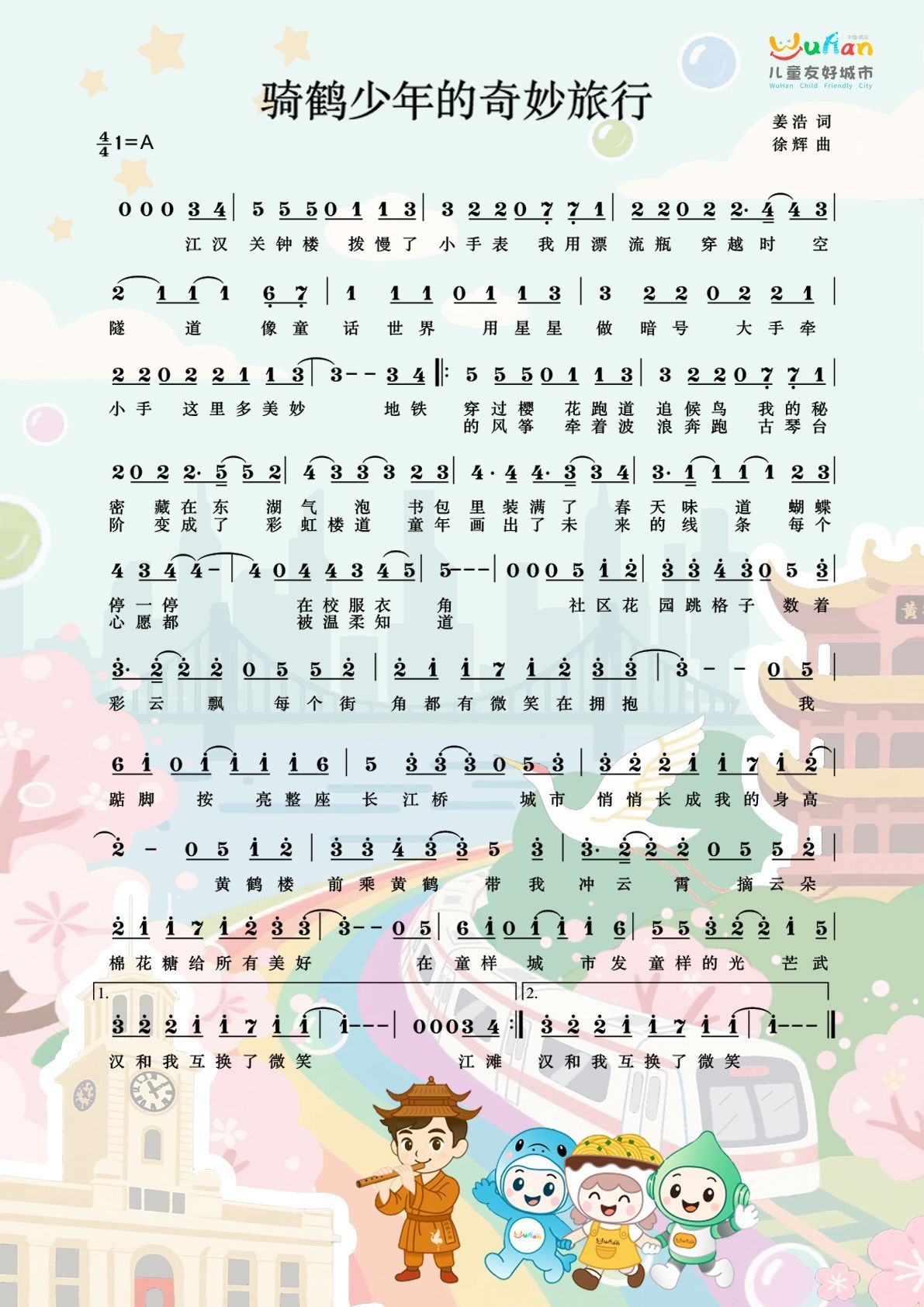 武汉市儿童友好城市主题曲《骑鹤少年的奇妙旅行》词曲。