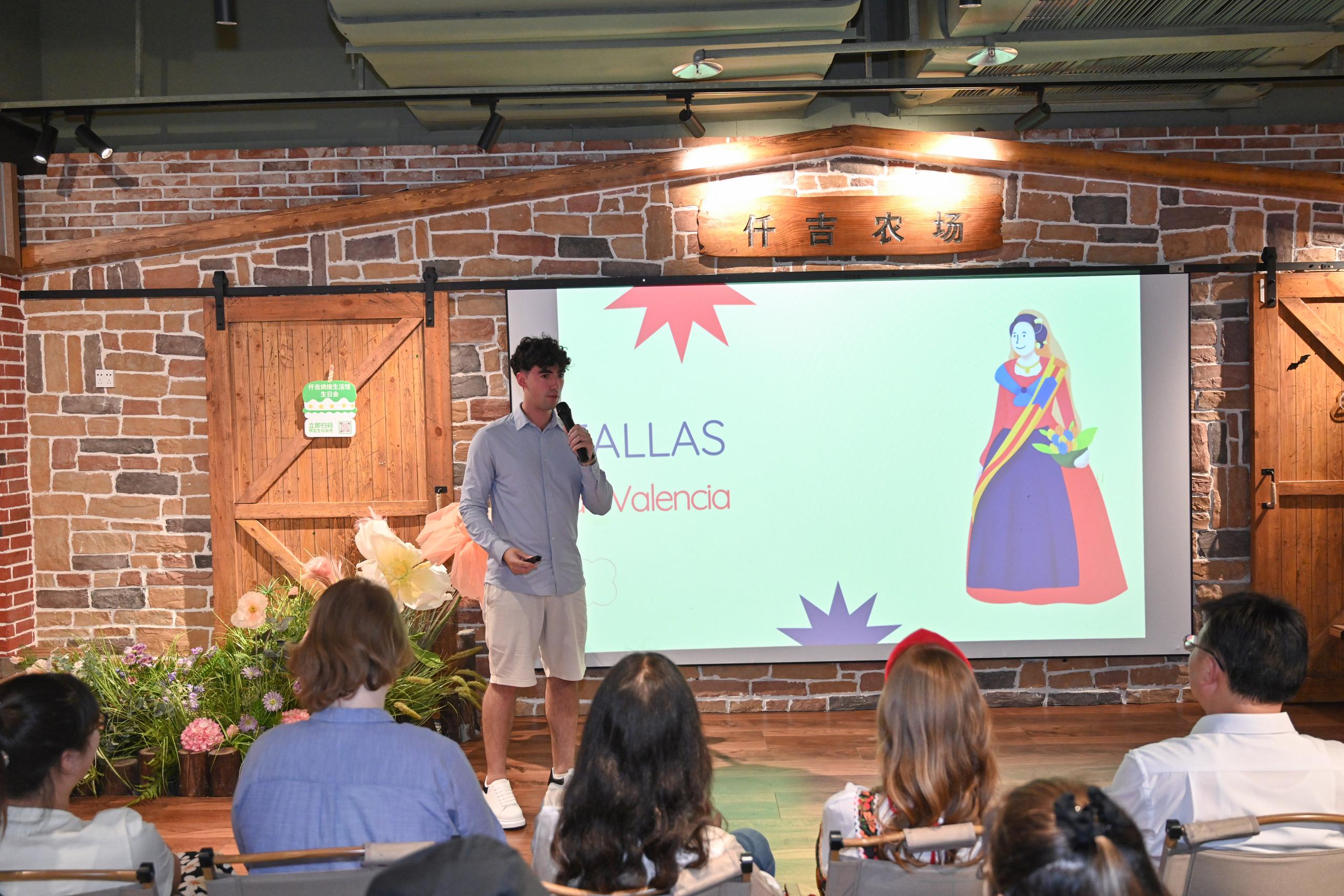 武汉大学西班牙留学生李安介绍传统节日法雅节。夏俊俊 摄
