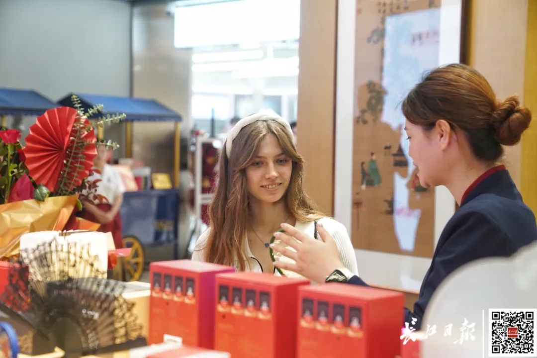 店员为顾客介绍“武汉礼物”。