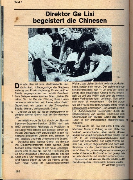格里希是改革开放后中国的首位“洋厂长”。1984年,武汉市开全国风气之先,通过德国友城杜伊斯堡市联系当地退休专家组织,成功聘请了发动机制造和铁芯技术专家格里希担任武汉柴油机厂厂长。