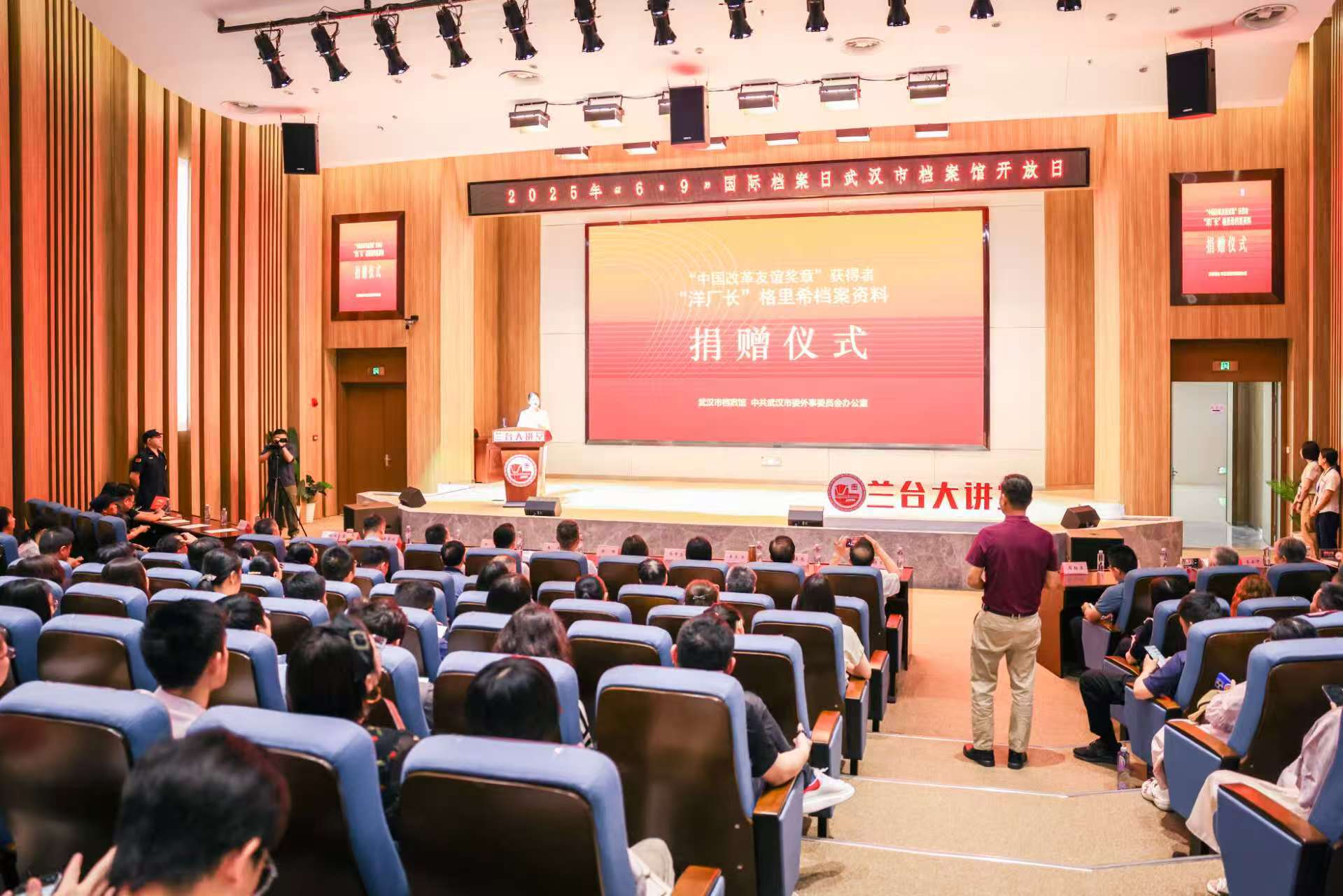 在武汉市档案馆举行的“中国改革友谊奖章”获得者“洋厂长”格里希档案资料捐赠仪式。曾熙来 摄