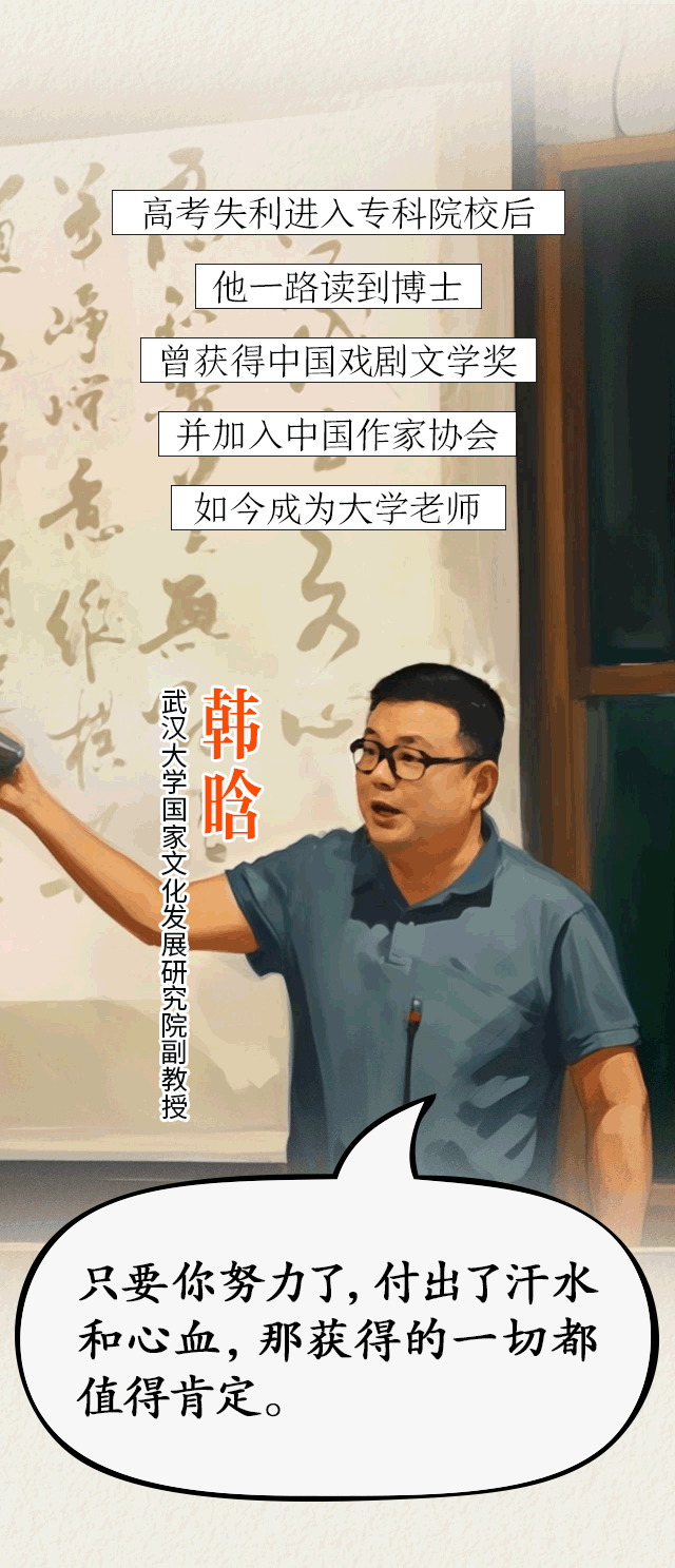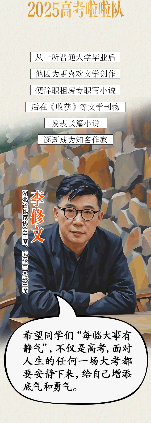 高考啦啦队:人人皆可成才 ©原创 2025-06-06 18:52 0 2025年高考来了, 武汉这支特殊的 “高考啦啦队” 为考生送来了专属祝福。 请查收! 人人皆可成才, 人人尽展其才。 加油少年! (策划:张凡 谌达军 记者:陈晓彤 汪洋 杨佳峰 文案:朱晨颖 设计:胡欣) 阅读更多: 来自千行百业的他们为高考加油: 人生的马拉松,勇敢出发就已胜过一切 【编辑:符樱】