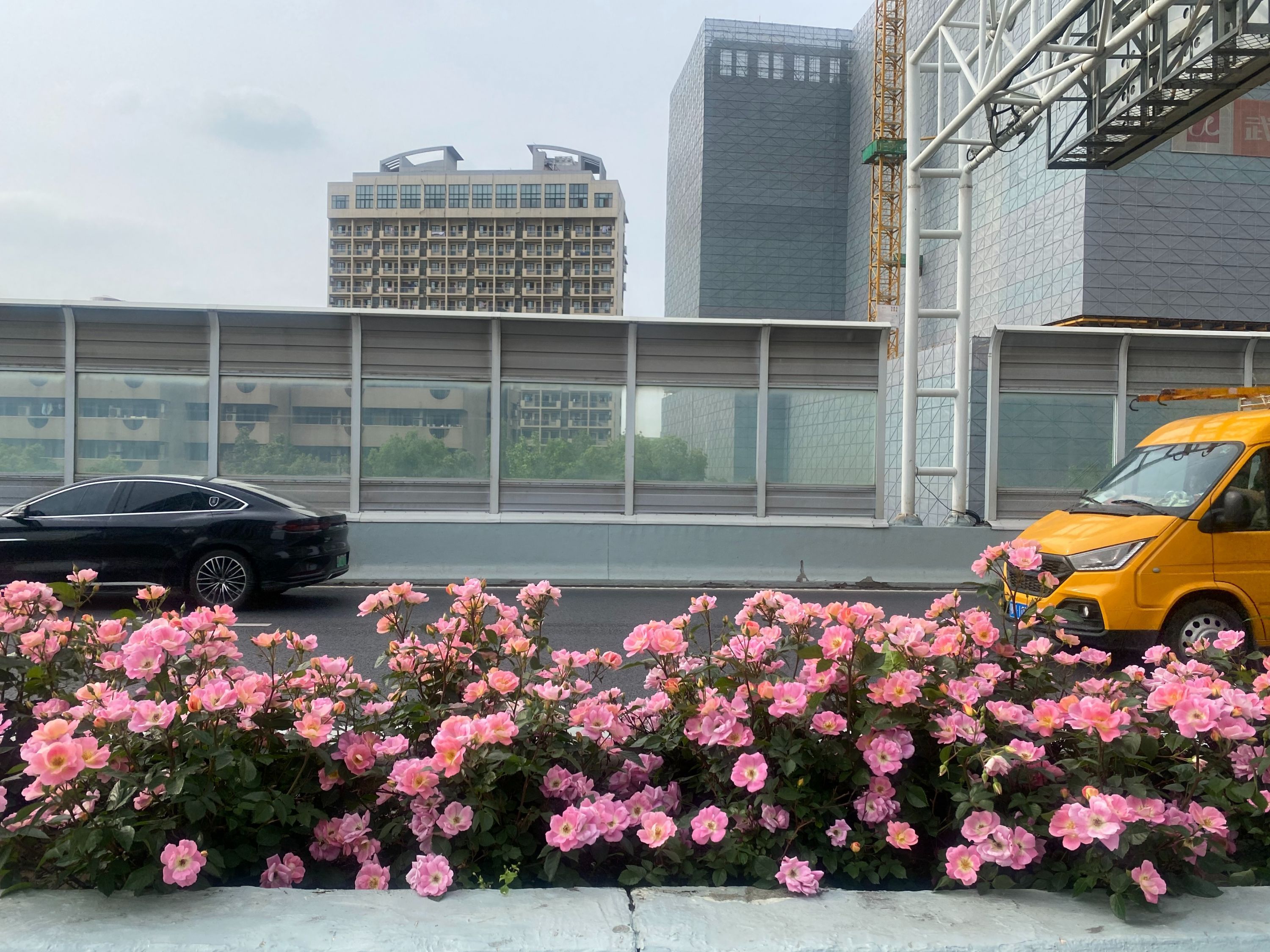城市环线和快速路高架是城市道路绿化难点之一。高架中分带狭窄、土层浅,养护不易,以前别说是种花,就是种草都难。2017年,武汉市攻克高架桥上种月季的技术难题,开始在城市环线和射线高架中分带大量种植月季。从单纯的绿篱,到“绿篱+月季”,再到重要路段的纯月季,通过调色不断打造和优化武汉的“空中花廊”。