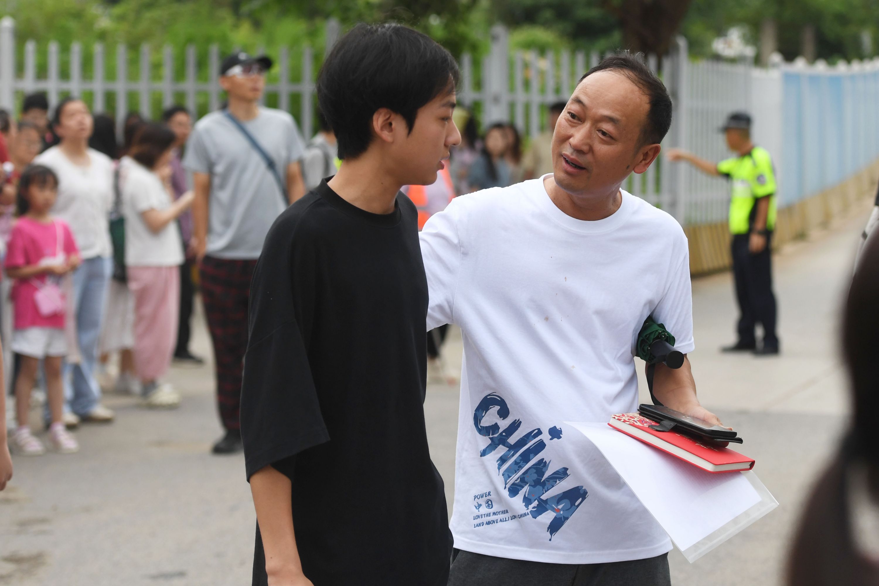 6月7日,华中科技大学附属中学考点,程龙富送儿子程瑞乔参加高考。记者高勇 摄