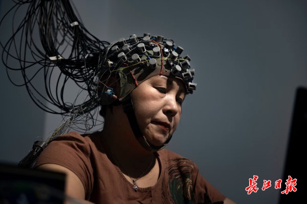 夏女士根据提示,大脑进行相应联想,神经信号变化实时反映出来。长江日报记者胡冬冬 通讯员 田娟 摄