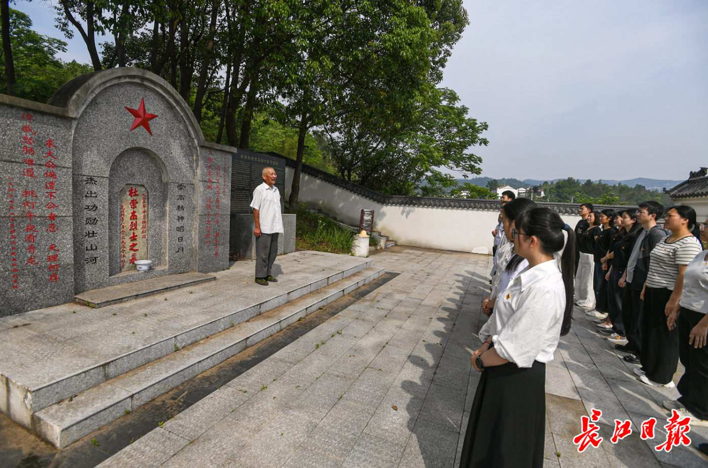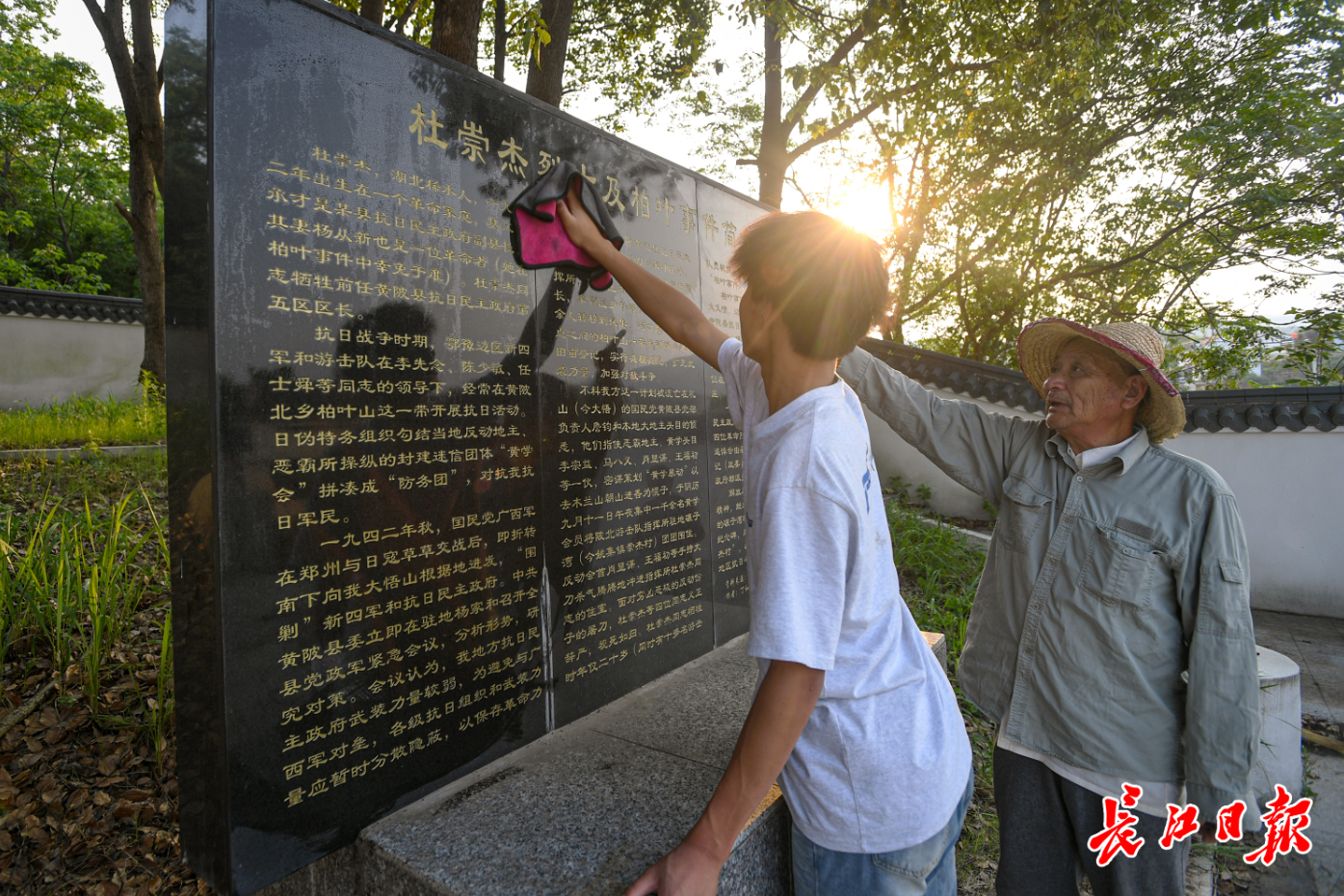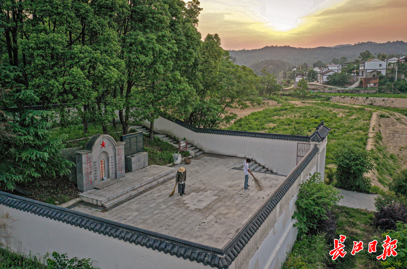 经过武汉市各级政府部门、驻村工作队的接力修缮,烈士墓于2021年扩建成“杜崇杰烈士陵园”,成为姚家集街道开展党日活动、进行革命教育的重要场地。但最动人的画面,仍是霞光中老人佝偻扫地的剪影——那个曾躲在奶奶身后的少年,如今成了当地的“红色灯塔”。石碑上雕刻的“崇高精神昭日月,杰出功勋壮山河”,在阳光照耀下熠熠生辉,映照着一位老人用一生写就的承诺。