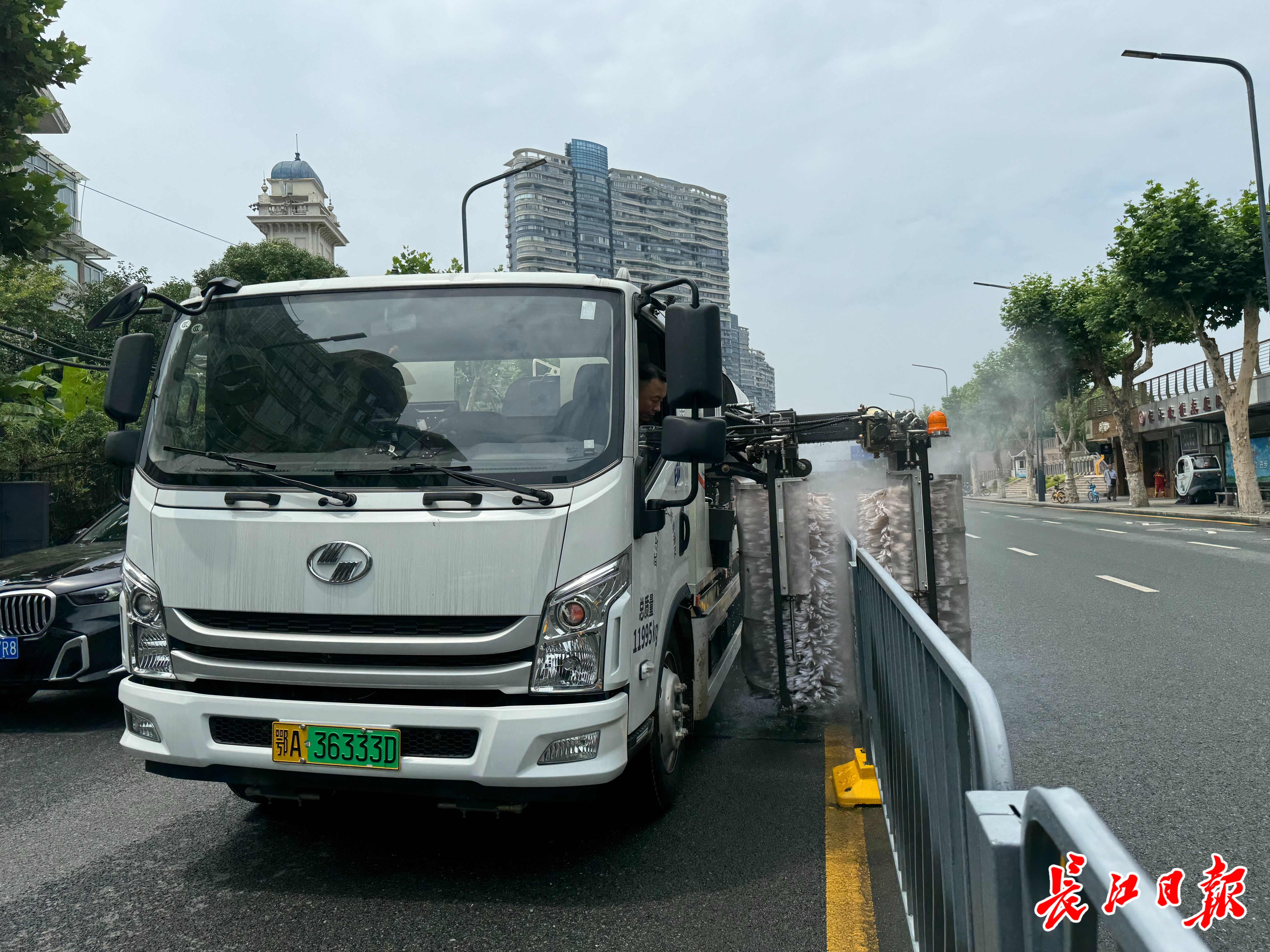 武昌区城管执法局二桥清洁队队长付国炬介绍,临江大道从长江大桥桥头堡至下新河街口,全长约4.5公里,配置30人,一半以上考了相关驾证,“除了路况复杂或人流量大的区域采用人工清扫外,其余区域均采用机械化作业,包括水车、洗扫车、护栏车、垃圾压缩车、高压冲洗车、纯电动道路清扫车等,机械化清扫率超90%”。