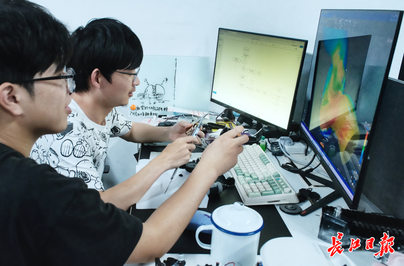 研发人员测试“喵卫”性能。记者 胡冬冬 通讯员林坭坭 摄