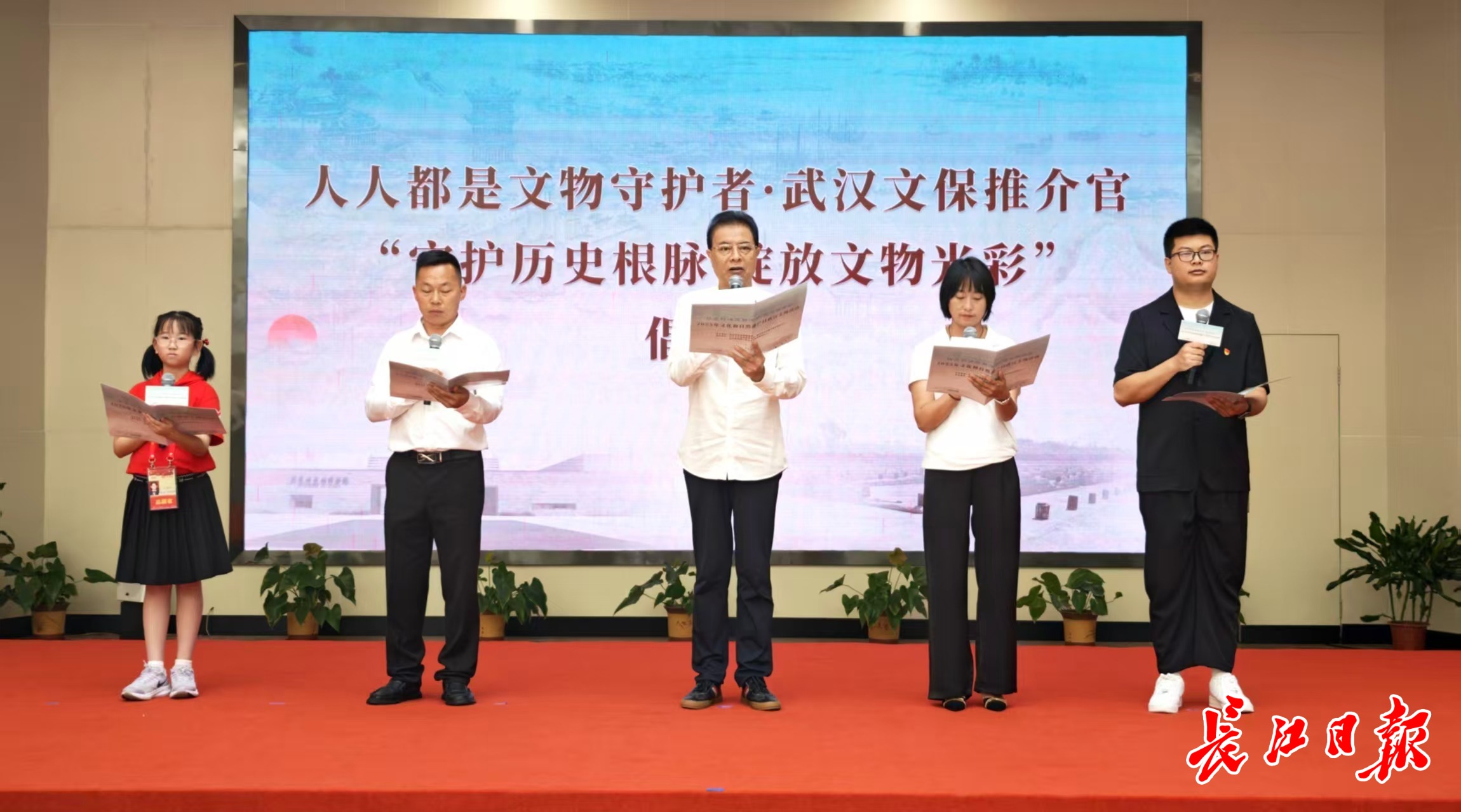 活动现场,“人人都是文物守护者·武汉文保推介官”倡议将氛围推向高潮。著名相声表演艺术家、一级演员、湖北曲艺家协会主席陆鸣以推介官身份,讲述老汉口的万里茶道故事;父子两代守桥人饶星火、青年文物修复师陈莎、盘龙城遗址工作者廖航、红巷苗苗雷依依,分别讲述了自己与文物和文化遗产的生动故事,并共同倡议:“守护历史根脉 绽放文物光彩”。